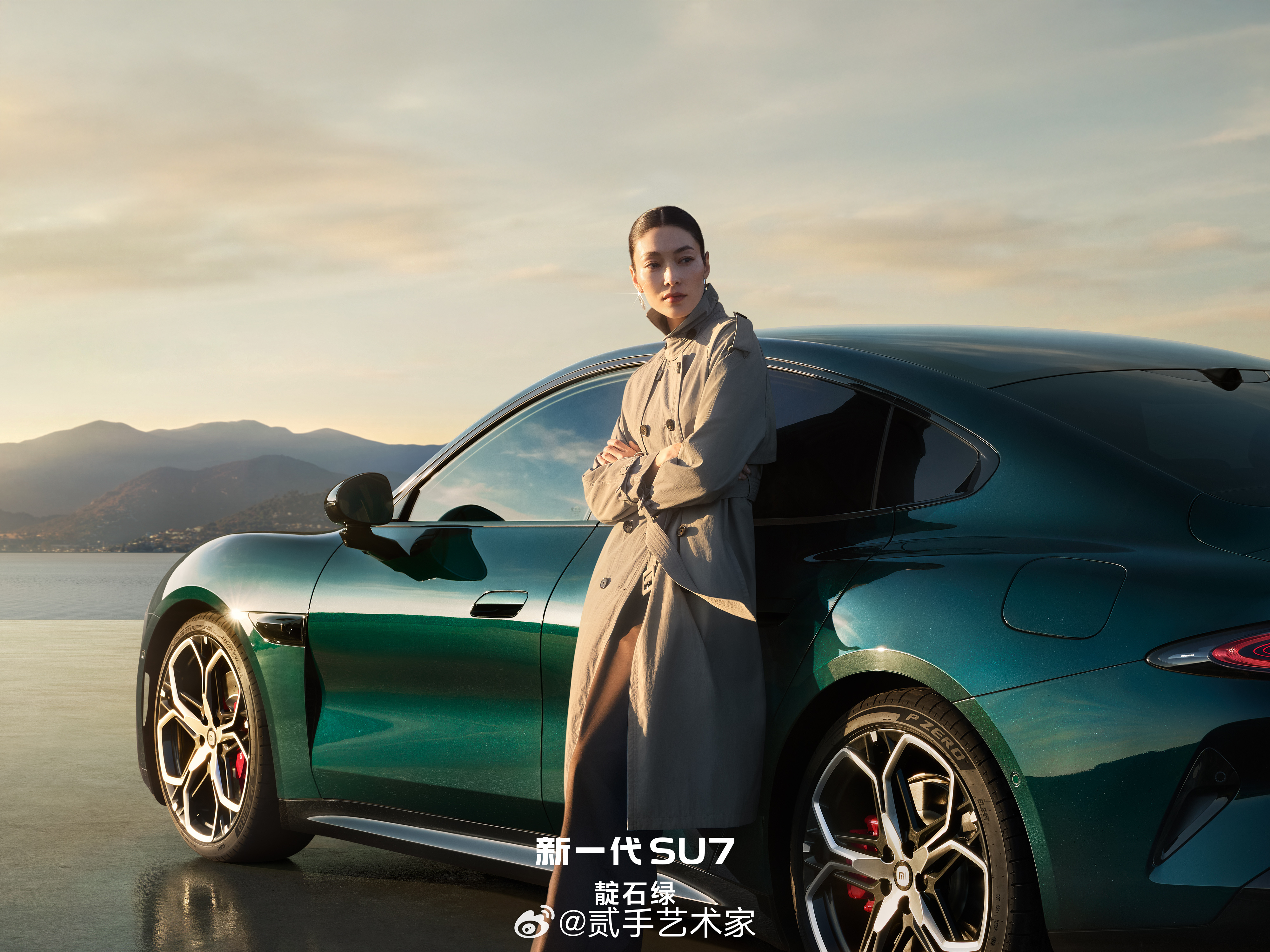 最先被击中,是那张“红墙映玉”图。朱红宫墙静静伫立,靛石绿车身融入其间,红绿撞色如传统“红墙绿瓦”般浑然天成。不需要多余语言,东方美学的静谧与张力,都在画面里了。