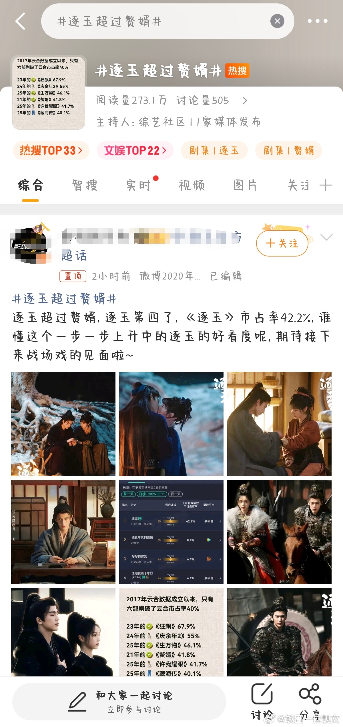 网友热评:逐玉是每部剧的热度都要蹭一下吗?现在又来对比赘婿