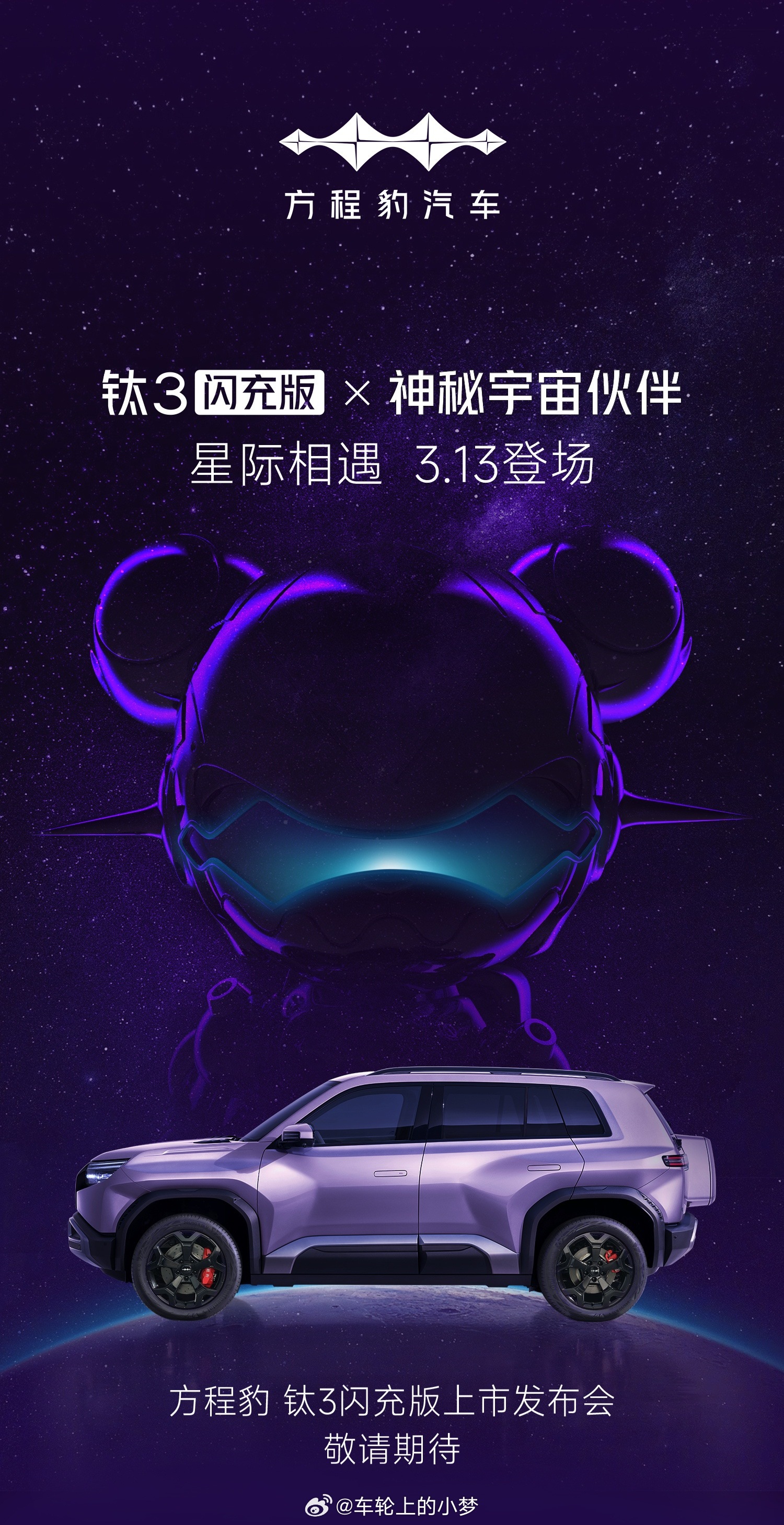 今天七点有个好玩又有趣的小家伙上市,记得来看看哦梦见新车新能源汽车方程豹钛3