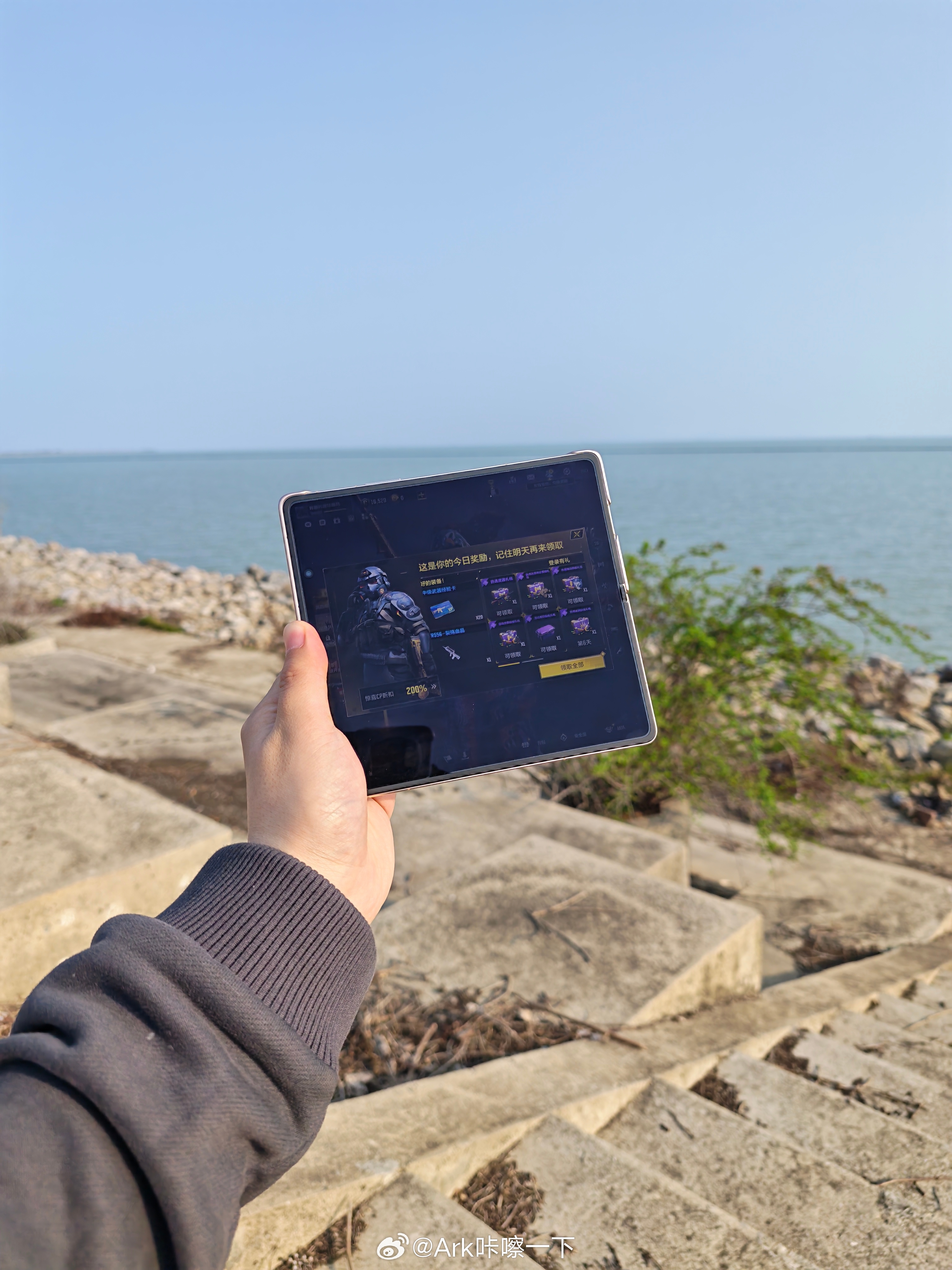 感受一下在正午阳光下的荣耀Magic V6内外屏,特地调了个黑色的页面,字体还是非常清晰的,我戴着墨镜打游戏也丝毫不影响,耀子的屏幕真是没的说 合肥·巢湖国家重点风景名胜区