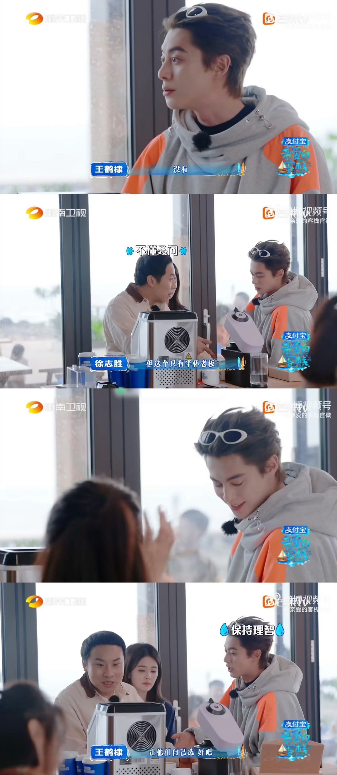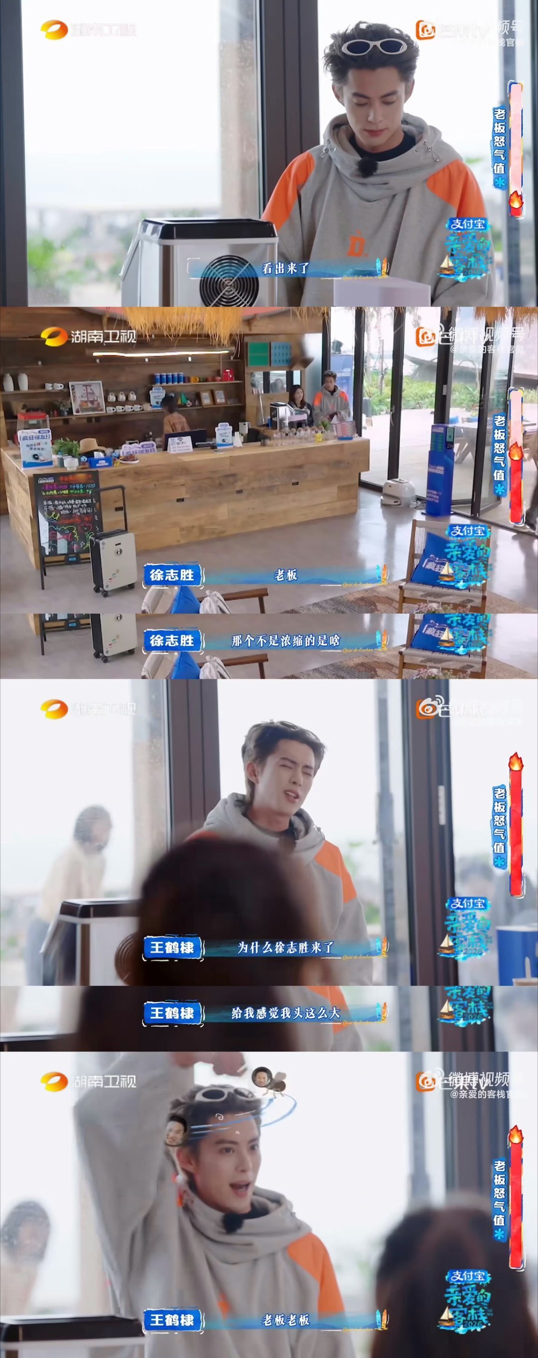 王鹤棣在无语的时候真的很无语 哈哈哈徐志胜综艺感绝了,刚回归就给老板花式“添乱”,王鹤棣直接头大到不行,对抗路相处模式亲爱的客栈