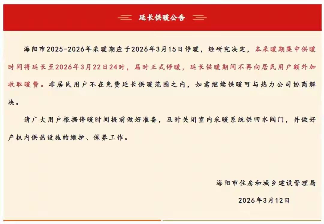 为济南和海洋两地点赞!本来供暖季就应该根据天气情况变化,可以提前供暖或者延期结束供暖,如果天气很热也可以推迟供暖或者提前结束供暖,一切以人民群众的实际需要为准。但现在恰恰相反,一些地方尤其是农村地区,在正式供暖的时间暖气也比较凉,看看网民每年的反应就知道,因此闹出来的纠纷就比较多。如果对群众供暖不好,很多人就会出现感冒生病现象,实际上变相增加了医药费,医保也是国家支出。