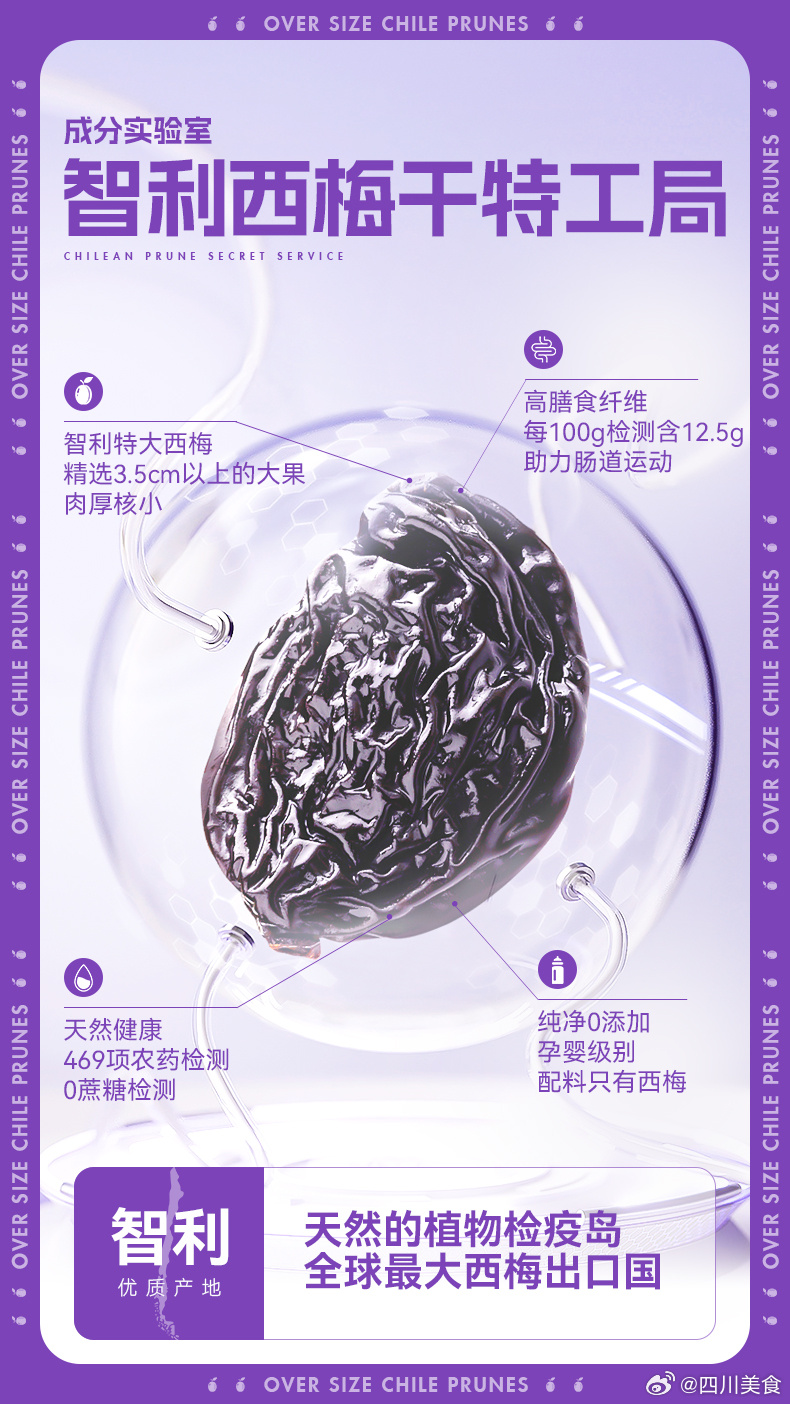智利西梅干0脂和低GI值,也是水果界的健身少女,膳食纤维高。富含膳食纤维的优点之一,就是吃完容易跑卫生间。我个人觉得西梅干还有一个优点是耐放,不用像新鲜西梅一样,急着得把它吃完,然后这个水果吃多了又容易拉得受不了。