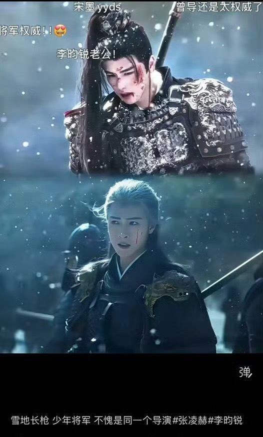 《逐玉》的张凌赫也闯进雪地长枪少年将军赛道了,和《九重紫》李昀锐饰演的“宋墨”一样的战损美学,这两部还是同一个导演。