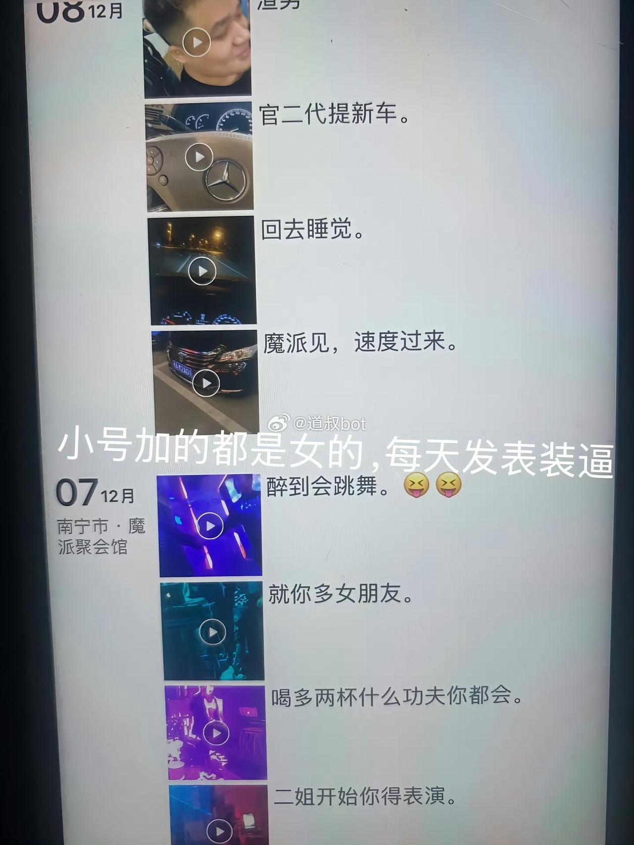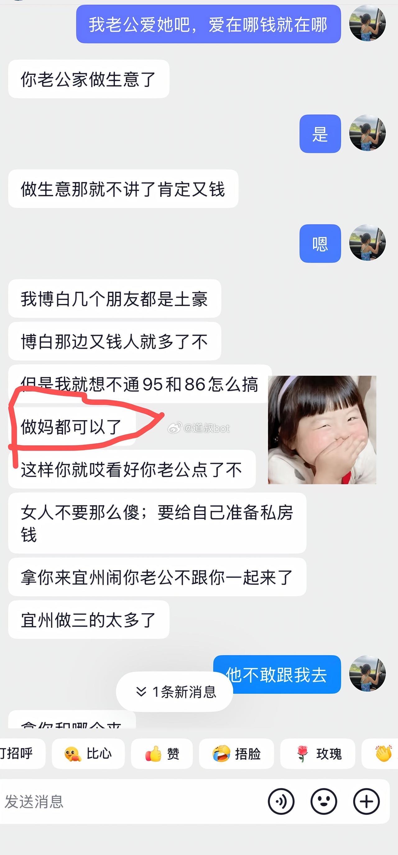 广西一女子彻底生气了,结婚 10 年的老公竟然用小号约会小三小四小五等等。女子爆料和老公结婚十年,生有两个娃平时老公对自己挺好的,以为他是一个忠诚的伴侣。偶然打开他的手机,没想到微信里面还隐藏了另外一个号,里面彻底打开了另一个世界,都是老公在外面各种吃喝玩乐炫富装叉的内容,加的朋友都是女的,其中就有他的小三小四小五等等。各种聊天记录也是劲爆火辣,和他们都是以老公老婆自居,俨然是另一个家庭。面对这种情况,女子不知道是该留还是不留。