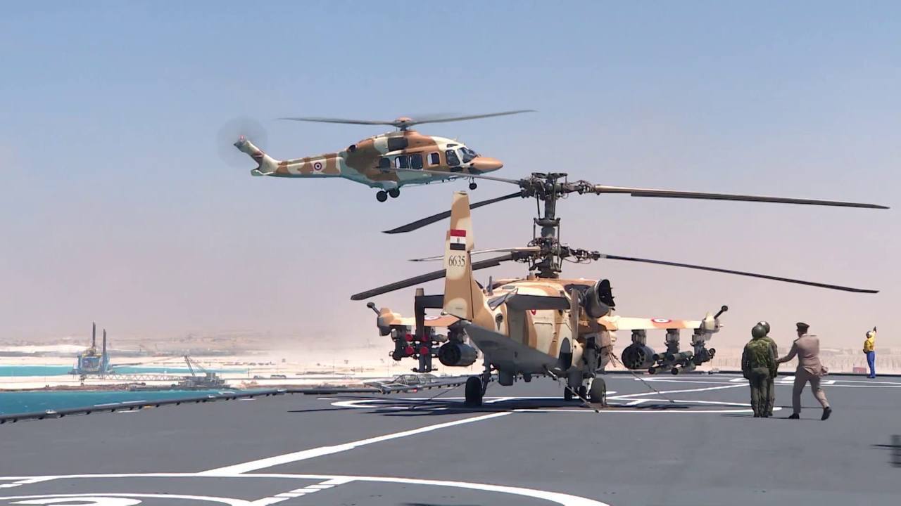🇪🇬埃及人的俄制卡-52攻击直升机在其法制“西北风”级两栖攻击舰上进行起降训练🐪