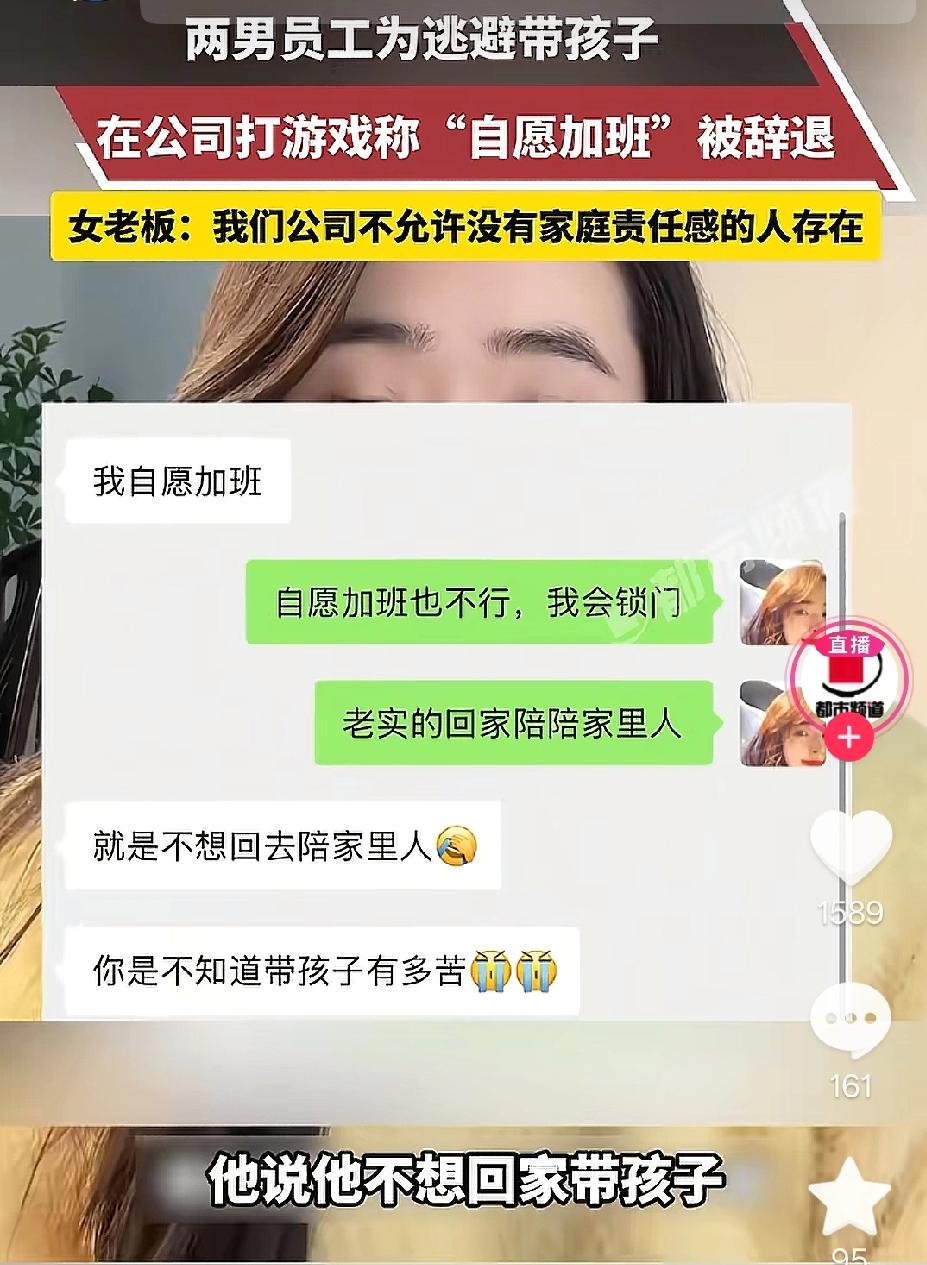 贵州,女老板收到两个男员工的消息,称要自愿加班,女老板不解:没有业务,快回家陪家人,不料,男员工却表示,就是不想回家带孩子,带娃辛苦。女老板怒怼:公司绝不留没有家庭责任感的人,当场将两人辞退。男员工不服,认为老板无故辞退。 一位女老板在社交平台分享了一段让她无比气愤的经历,引发众多网友热议。 事情的起因,是公司接连出现两名男员工,以“自愿加班”为借口,逃避回家带孩子。 女老板得知真相后毫不留情,直接将两人辞退,态度坚决,立场鲜明。 女老板回忆,早在上个月,公司就辞退过一名男员工。 这名员工每天下班之后从不按时回家,而是留在公司加班,其实是在公司打游戏,甚至还在同事面前表示自己要等到老婆把孩子哄睡之后再回家,这样自己就能轻松自在,不用承担带娃的责任。 女老板得知这件事后非常生气,在她看来,一个连自己的孩子都不愿意陪伴、连最基本的家庭责任都要推卸的人,根本不可能对工作有责任心,更不值得公司培养。 于是,她果断将这名员工辞退,也给公司所有人敲响了警钟。 本以为这件事就此结束,没想到没过多久,类似的情况再次出现。 某天,女老板突然收到公司一名男员工发来的消息,他表示要自愿留在公司加班。 看到消息的那一刻,女老板十分不解,甚至有些哭笑不得。 她直接回复员工:公司从今年8月份成立到现在,根本没有那么多业务,哪里来的班可加?没有工作就早点回家,多陪陪家人。 可让她万万没有想到的是,这名男员工接下来的一番话,彻底点燃了她的怒火。 他并没有因为老板的体谅而领情,反而大吐苦水,直白地告诉老板:就是不想陪家人,带孩子太辛苦。 这番话让女老板又气又失望。在她的认知里,带孩子从来不是某一个人的事,而是夫妻双方共同的责任。 她当场怒怼这员工:公司可以包容员工的辛苦,也可以理解生活的压力,但绝不允许没有家庭责任感的人在这里混日子。 一个连自己的家庭、自己的孩子都不愿付出的人,就算工作能力再强,她也不会录用。 男员工当即反驳:我就是申请加班而已,你这是无故辞退员工呀? 女老板毫不退让,直接回应:你还在试用期,没有达到我的用人标准,你的工资我会算给你,一分不少,如果不满意的话你可以去劳动仲裁。 消息一出,男员工瞬间傻眼,他怎么也想不到,自己只是想找个地方躲清闲,竟然会被老板开除。 这件事被女老板分享出来后,立刻引发了网友的激烈讨论。 有人支持女老板的做法,认为她三观极正,敢于直面社会中普遍存在的“丧偶式育儿”问题。 也有人觉得辞退过于严厉,应该以教育为主。 《劳动合同法》第21条规定,试用期内,用人单位仅可因劳动者不符合录用条件、严重违反规章制度等法定情形解除劳动合同,并应当说明理由。 两名男员工无实际工作任务,却以“自愿加班”为由滞留公司,期间不工作、打游戏,属于虚假加班、严重违反职场纪律与诚信义务。 若公司有明确制度规定“加班须从事工作、禁止虚假加班”,且已告知员工,老板以此为由辞退,属于合法解除。 员工辩称“只是申请加班”,但加班并非滞留摸鱼的借口,其行为已构成违纪。 老板以“达不到用人标准”表述不够规范,但以虚假加班、严重违纪为真实理由辞退,合法有效。老板告知员工可申请仲裁,系权利告知,不影响辞退合法性。 综上,员工行为明显违规,老板以虚假加班、严重违反规章制度辞退,合法有据。