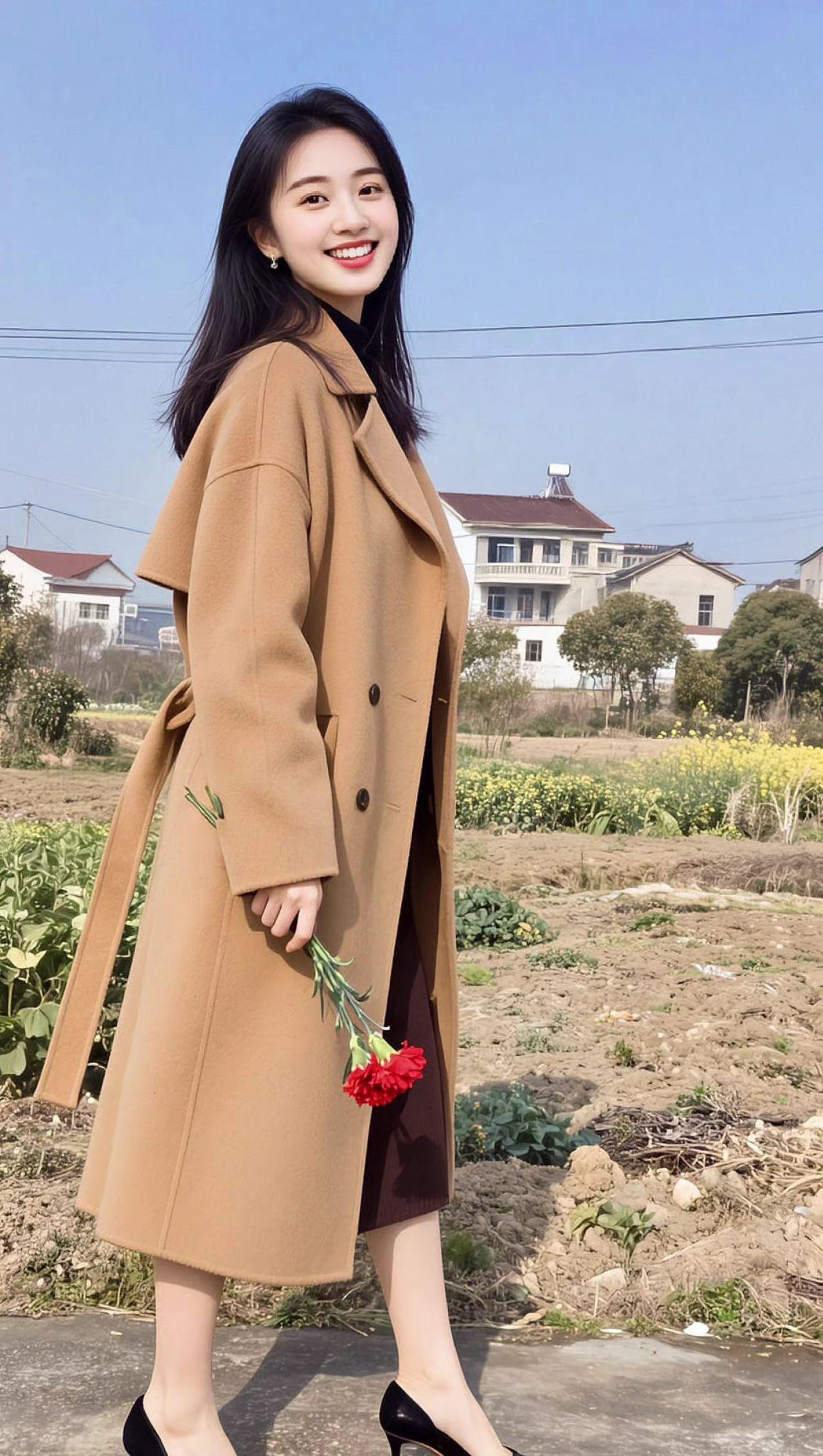 AI田园生活照 抖音ai创作 风衣穿搭 每日分享 助手抖音