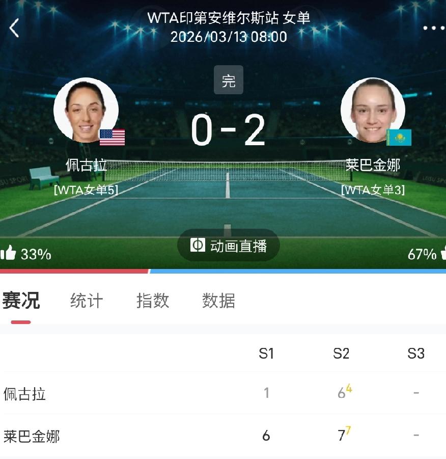 2026WTA1000印第安维尔斯的冠军大概率是双巴之争,萨巴和莱巴这两个人目前是本赛季硬地赛场状态最好的两位选手。今年的战绩萨巴伦卡是15胜1负,唯一一场败绩是莱巴金娜澳网所赐,而莱巴金娜是16胜3负,在布里斯班和多哈的1/8决赛分别不敌穆霍娃和姆博科,在迪拜第三轮输给克罗地亚的鲁兹奇。 今天的1/4决赛萨巴伦卡再胜姆博科,莱巴金娜击败佩古拉,相信在半决赛,诺斯科娃难以阻挡萨巴伦卡前进的步伐,乌克兰人斯维托丽娜虽然今年很勇(19胜3负),但莱巴金娜的赢面还是要高一些,所以预测双巴晋级决赛。