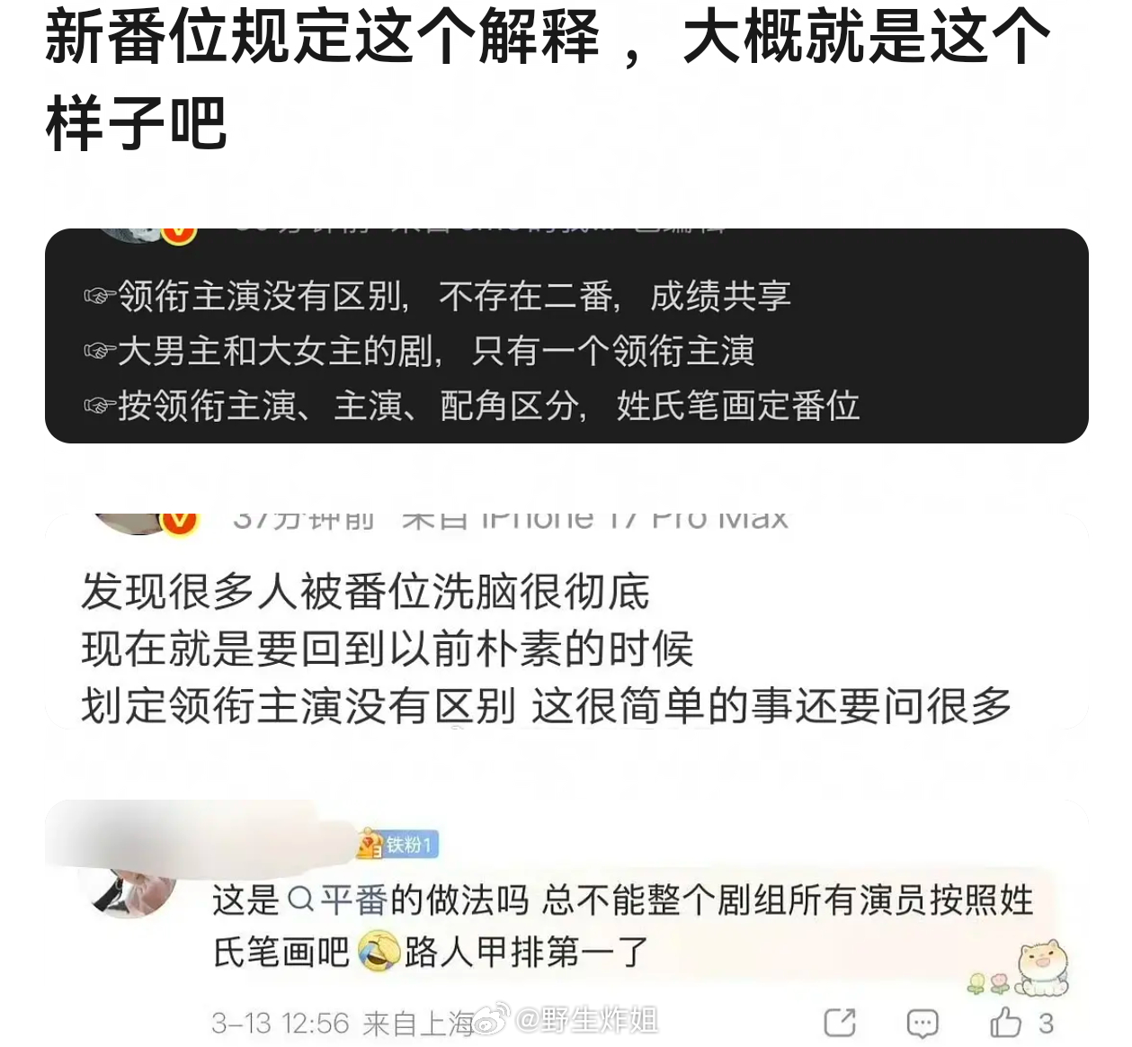 番位是舶来品,支持取消,把看剧还给观众广电总局将公布演员番位规则