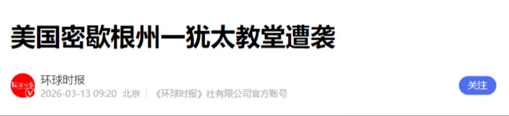 战火最终还是烧到美国本土了 美国当地时间3月12号,新华社纽约分社发布权威消息,美国密歇根州底特律市西北郊区的西布鲁姆菲尔德犹太教堂,发生了一起蓄意持枪驾车袭击事件。 以前总听美国人说,战争是别人家的事,自家本土安全得像个铁桶。毕竟东西两大洋隔着,南北都是没啥威胁的邻居,再加上全球各地几百个军事基地当“防火墙”,怎么看都像是战火烧不到的“世外桃源”。 可这次,子弹真真切切打在了自家院子里,还是专门挑了个敏感的犹太教堂下手,这下谁也没法再装睡了。 事情发生在当地时间中午12点19分,正是教堂里最热闹的时候——里面还附设了个幼儿园,140个孩子正在上课。嫌疑人艾曼·穆罕默德·加扎利,41岁,黎巴嫩出生,2016年拿到的美国国籍,他开着一辆装满爆炸物的车,直奔教堂入口就冲了过去,车头上还架着步枪。 这可不是简单的交通事故,加扎利冲进去就开始开枪,教堂的安保人员反应也算快,立刻就跟他交火了。没几分钟,加扎利就被击毙了,不过他的车也着了火,浓烟滚滚地从教堂屋顶冒出来,隔着几条街都能看见,把周围居民吓得不轻。 最让人后怕的是,警方在他车里搜出了大量没来得及引爆的爆炸物。要是这些东西真炸了,别说教堂里的人,恐怕周边几个街区都得受牵连。想想那些正在上课的孩子,真是不幸中的万幸——除了一名安保人员受了点伤,教堂里的工作人员和孩子们全都安然无恙。 FBI当天就给这事儿定了性,说是“针对犹太社区的定向暴力行为”。这话翻译过来就是,这不是随机的恐怖袭击,而是专门冲犹太人来的。为啥?据说加扎利的多名家人,最近在以色列空袭黎巴嫩的时候被炸死了,他这是来报复的。 有意思的是,同一天美国还出了另一起袭击事件。弗吉尼亚州一所和美军关系密切的学校也遭了袭击,造成2人死亡,还有几名美国陆军人员受伤,嫌疑人同样当场死亡。FBI已经宣布要主导调查这两起案件,看它们之间有没有关联。 以前总听美国人嘲笑别的国家不安全,说自家是“全球最安全的国家”。可现在呢?犹太教堂得配专职安保人员,学校门口得装防弹玻璃,就连去趟超市都得担心会不会遇到枪击。这哪是安全国家该有的样子? 更讽刺的是,美国这些年在全球各地煽风点火,今天制裁这个,明天空袭那个,中东地区更是被搅得鸡犬不宁。以色列和黎巴嫩打了这么久,美国一直站在以色列这边,又是送武器又是给情报的。谁能想到,这把火绕了大半个地球,最后还是烧到了自己家里。 美国国土安全部和FBI现在都紧张得不行,一边忙着调查,一边赶紧给周边地区发布避险令,还在各个宗教场所加派了巡逻。可这临时抱佛脚的做法,真能管用吗? 要知道,美国这些年国内的仇恨犯罪就没断过。2018年匹兹堡犹太教堂枪击案,11人遇难;2022年得州小学枪击案,21人死亡。每次出了事,政客们就出来喊几句口号,然后该干嘛干嘛,控枪法案从来就没通过过像样的。现在好了,连国外的冲突都开始往国内蔓延了,这安全形势真是越来越让人看不懂。 加扎利的案子也挺耐人寻味。他2011年以美国公民配偶的身份入境,2016年入籍,按理说在美国生活了十几年,早就该融入当地社会了。 可一场中东的战争,还是让他选择了用极端方式报复。这背后,是美国社会撕裂的缩影——不同族裔、不同宗教、不同政治立场的人,早就成了“平行世界”,稍微一点外部刺激,就能引发激烈冲突。 更尴尬的是,美国一直以“世界警察”自居,到处管别人的闲事,说要维护“基于规则的国际秩序”。可现在,自家本土都成了冲突的前线,连教堂这种神圣的地方都不安全了。这要是传出去,那些跟着美国跑的盟友们,心里恐怕也得犯嘀咕:连老大自己都保护不了,我们还能指望谁? 当天下午,FBI就宣布要主导调查这两起案件,还把它们定性为“恐怖袭击”。可定性归定性,解决问题才是关键。美国要是不反思自己的外交政策,不解决国内的社会分裂问题,不真正做点控枪的实事,谁能保证下一次袭击不会来得更快、更猛烈? 以前总听人说,美国是“山巅之城”,是“自由灯塔”。可现在,这灯塔好像有点晃,山巅上也开始掉石头了。战火既然已经烧到了本土,再想当“旁观者”可就难了。