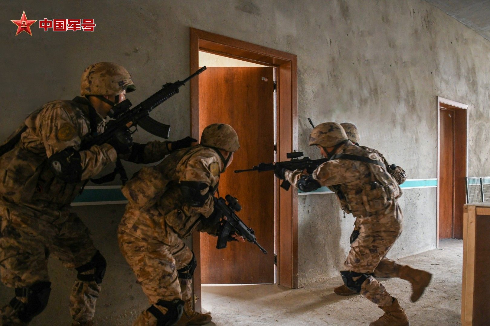 近日,海军某旅组织侦察分队开展室内搜索演练,队员们密切协同配合,快速突入,对目标区域进行全方位搜索,有效提升了近距离作战与应急处突能力。