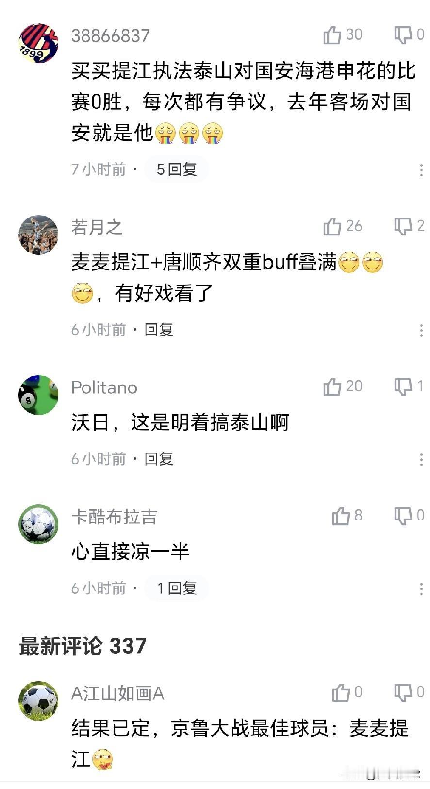 第二轮中超联赛执法裁判出炉,焦点战“京鲁大战”主裁判安排麦麦提江,VR裁判安排唐顺齐引发球迷质疑和争议,有球迷认为这种安排是故意针对山东泰山。 去年中超联赛,唐顺齐出任主裁判,麦麦提江是VR裁判,罚下了山东泰山的吴兴涵和泽卡,导致少打两人的山东泰山客场1:6输给北京国安,让人记忆犹新,难怪山东泰山的裁判质疑这场比赛的裁判安排。 有一说一,山东泰山和北京国安是传统强队,两队的交手一直以来看点十足。 那么问题来了,您认为中足联安排麦麦提江和唐顺齐执法“京鲁大战”,是不是有意安排?山东泰山