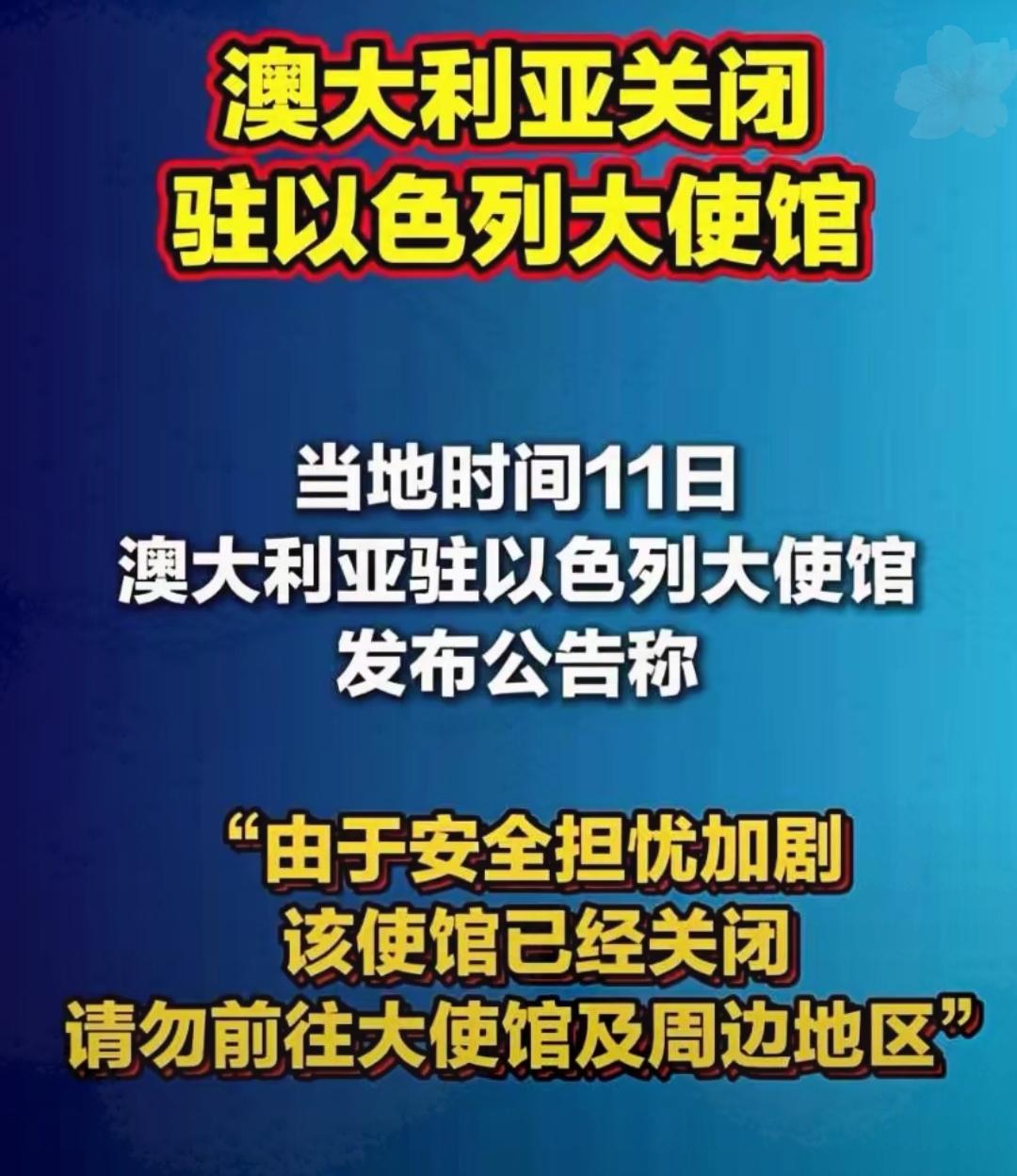 继西班牙之后, 澳大利亚宣布关闭驻以色列的大使馆。 西班牙基于立场做出关闭决定,这体现了其外交自主性。澳大利亚因安全担忧而行动,说明局势的紧张对驻外机构影响不小,这都反映出以色列局势的复杂。 澳大利亚作为美国盟友关闭使馆,给其他西方国家敲响了警钟。其他国家或许会重新审视与以色列的关系,评估自身利益和安全风险,猜想是否要跟随这一行动。 这种关闭使馆的行为一旦引发连锁反应,会让以色列在国际上更加孤立。同时也会影响美国在中东的布局,打乱其原本的战略计划。 西方国家可能会陷入两难境地,一方面要考虑与美国的同盟关系,另一方面又要顾及自身的安全和利益。这一事件后续发展值得密切关注。