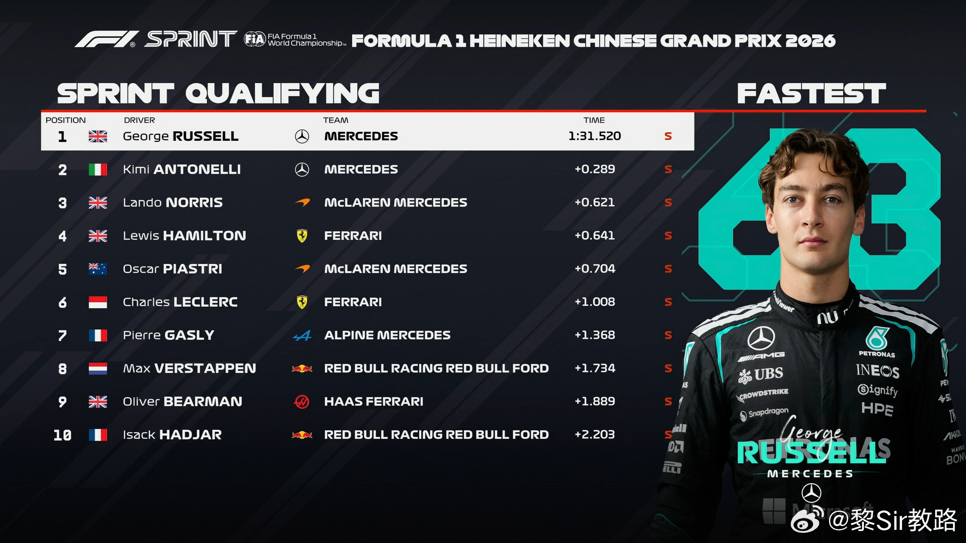 F1冲刺排位赛 后预测一下冲刺赛吧!