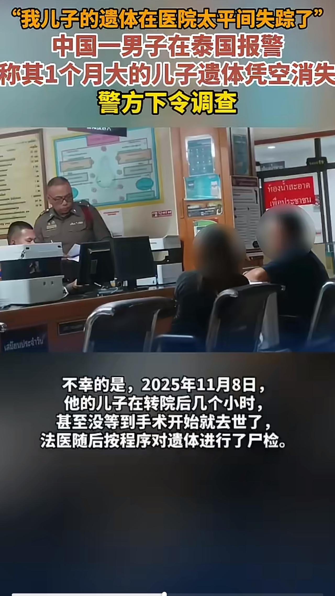 泰国清迈发生了一起让人揪心又离奇的案件,一名中国父亲的儿子在医院去世后,遗体竟然在太平间离奇失踪。 这位父亲姓方,在清迈经商多年,原本平静的生活被一场突如其来的变故打破,方先生的儿子是个早产一个月的男婴,出生时体重只有一千克左右,情况十分危急,因为当地一家私立医院不具备手术条件,孩子被紧急转送到清迈一家大型医院救治,可惜的是,转院后仅几个小时,孩子还没来得及接受手术,就因病情过重离开了人世,这让方先生一家悲痛欲绝。 按照程序,医院对孩子进行了尸检,可方先生拿到尸检报告后,却觉得结果和孩子转院时的病情不符,心里充满了疑惑和不安,他怀疑医院在救治过程中存在疏忽,甚至可能有过失致人死亡的情况,为了弄清楚真相,方先生决定申请将孩子的遗体转送到曼谷的诗丽吉法医学系进行第二次尸检,希望能找到更准确的死因。 在等待二次尸检手续的过程中,孩子的遗体被暂时存放在涉事医院的太平间,方先生每天都在焦急地等待,希望能尽快为孩子讨回公道,可让他万万没想到的是,当他终于拿到二次尸检的许可,前往医院领取孩子的遗体时,却遭遇了更让他崩溃的一幕,医院的工作人员告诉他,孩子的遗体不见了! 方先生简直不敢相信自己的耳朵,他四处寻找,询问了医院的每一个角落,可得到的答复都是“不知道”“没看见”,在寻找了数小时无果后,方先生无奈之下只好选择报警,他来到清迈府拉贾尼维斯警察局,向警方详细讲述了事情的经过,希望能借助警方的力量找回孩子的遗体。 警方接到报案后,高度重视这起案件,立即下令展开调查,他们与医院方面进行了多次协调,仔细查明遗体的处理和运输流程,不放过任何一个细节,试图找出遗体失踪的真正原因,以及是否因医院方面的疏忽所导致。 这起事件不仅让方先生一家陷入了巨大的痛苦之中,也引发了社会各界对医院管理和医疗安全的广泛关注,大家纷纷表示,遗体失踪这样的事情实在太离奇,也太让人难以接受了,希望警方能尽快查明真相,给方先生一个公正的答复,也让逝者能够安息。离奇死亡案 清迈案件 新生儿离世 儿子遗体在泰医院失踪中国父亲报警 事件来源:红星新闻