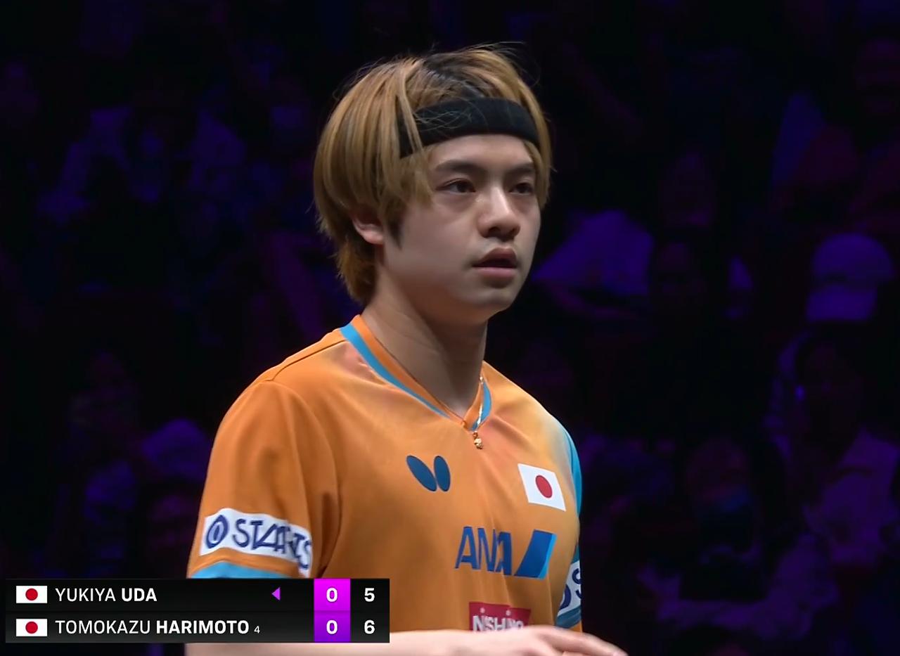 周雨说:宇田打张本智和,速度和技术都够了,但是稳定性不够。 宇田的得上限很高, 下限也很低。 开局两人打成了2:2平, 张本智和的落点比较好, 宇田节奏更好, 之后两人一直胶着, 关键球张本智和更稳定, 10;8拿到局点, 11:9拿下首局。