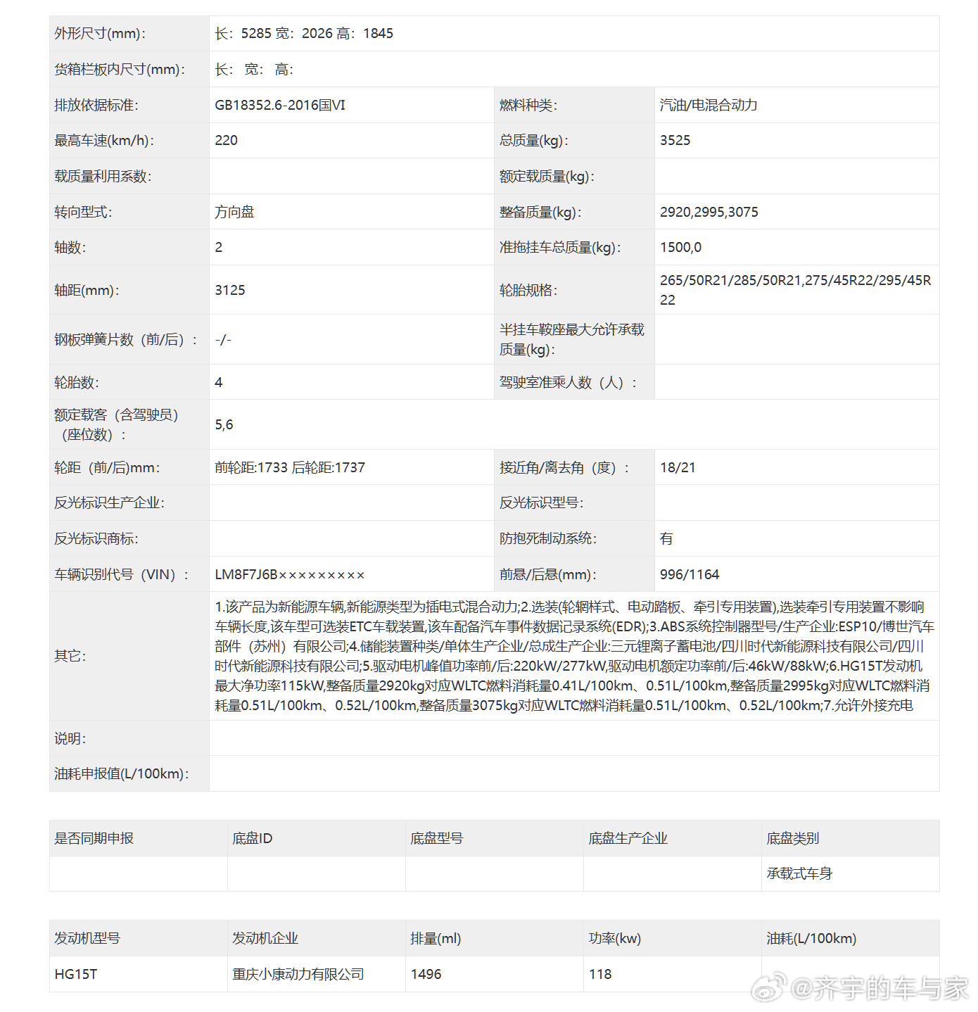 问界M9证件照来了,三围加大:老款5230-1999-1800-轴距3110新款5285-2026-1845-轴距3125