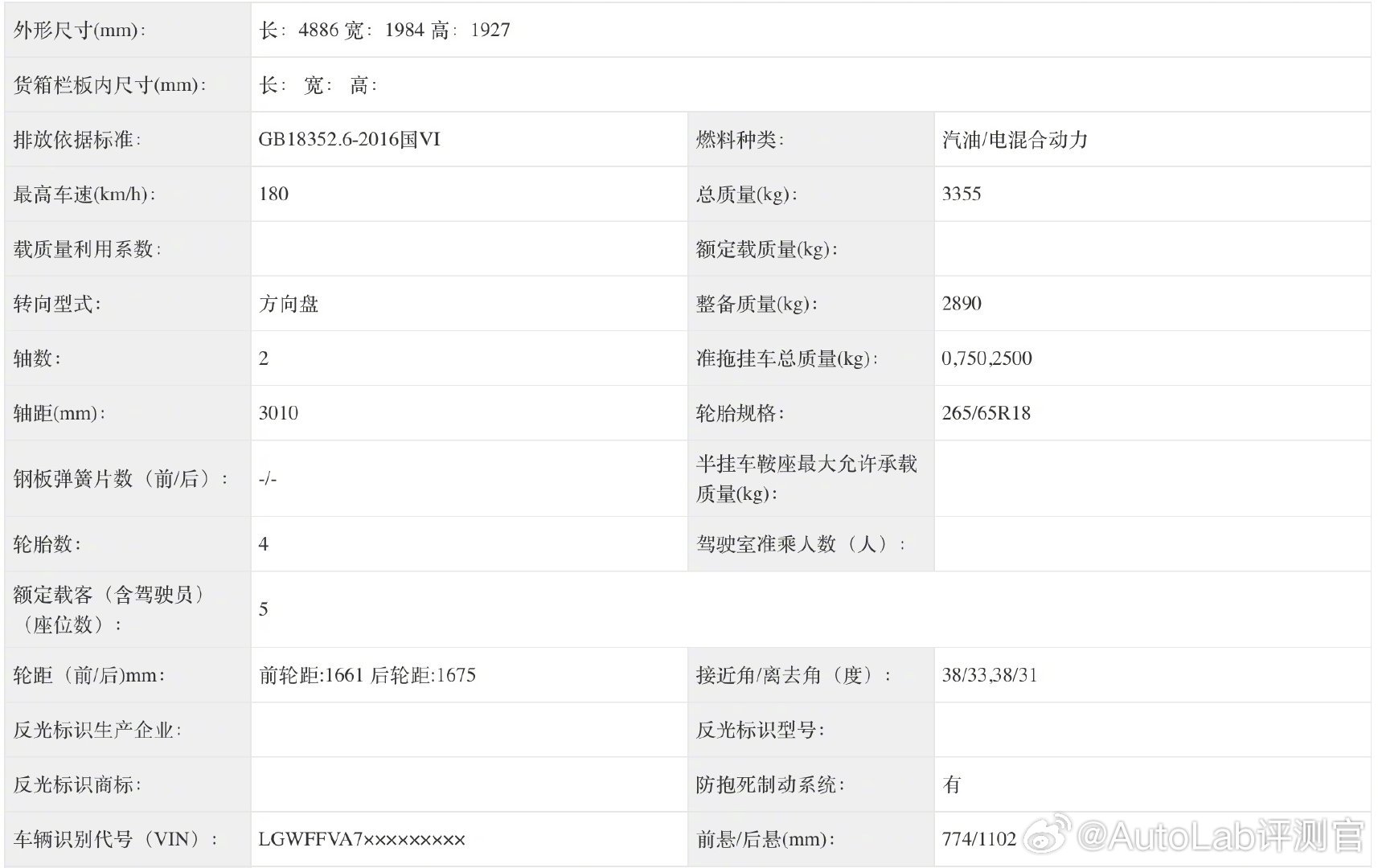 然后最大的变化是前桥前移了不少,整车侧面姿态好看很多,另外4886mm的车长,轴距竟然做到了3010mm,坦克全系最长轴距,要知道坦克700才3000mm的轴距,坦克300 Hi4-Z价格恐怕不太好定吧
