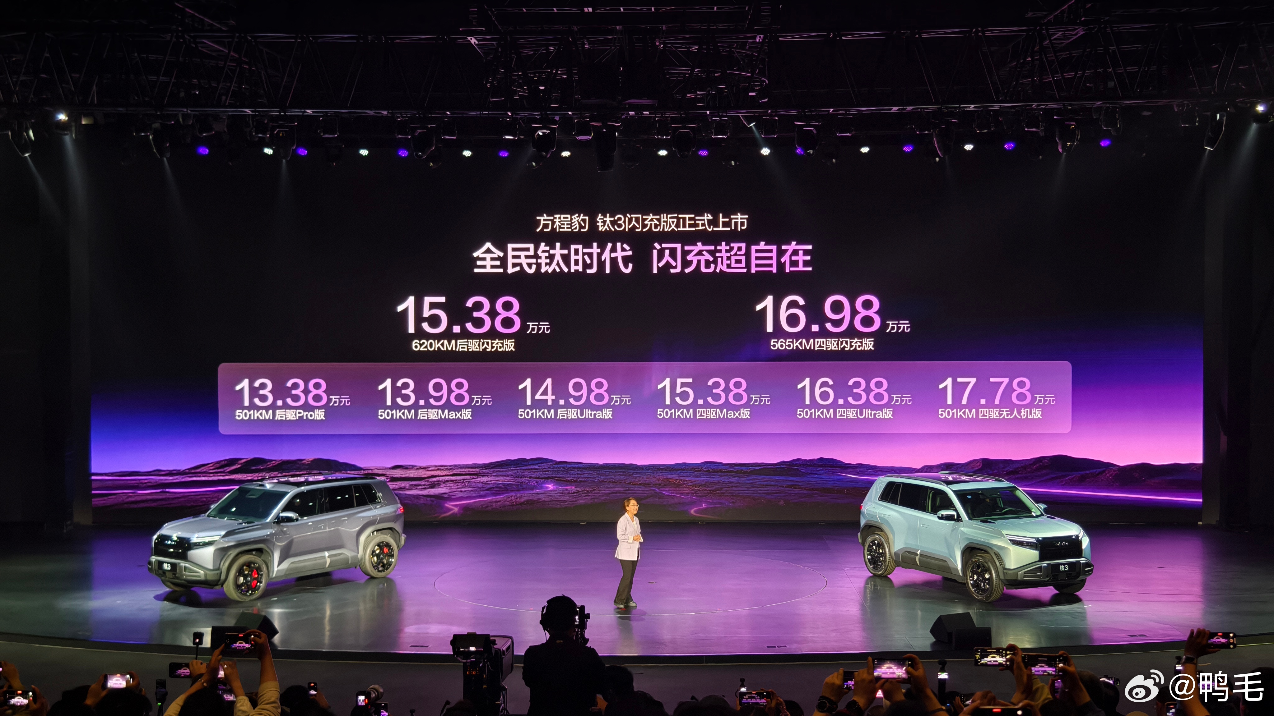 方程豹钛3闪充版正式上市,上市价格15.38万~16.98万元。
