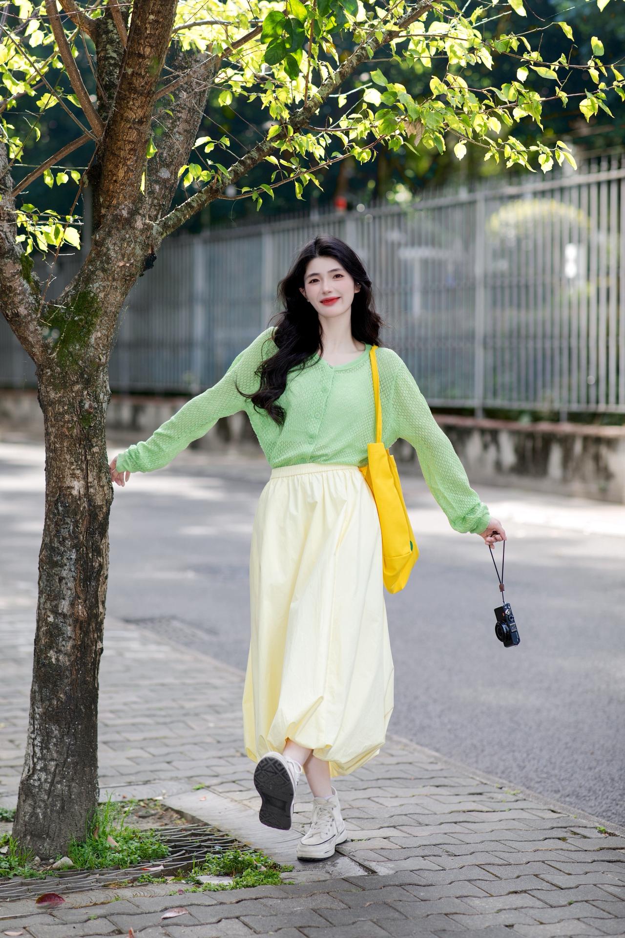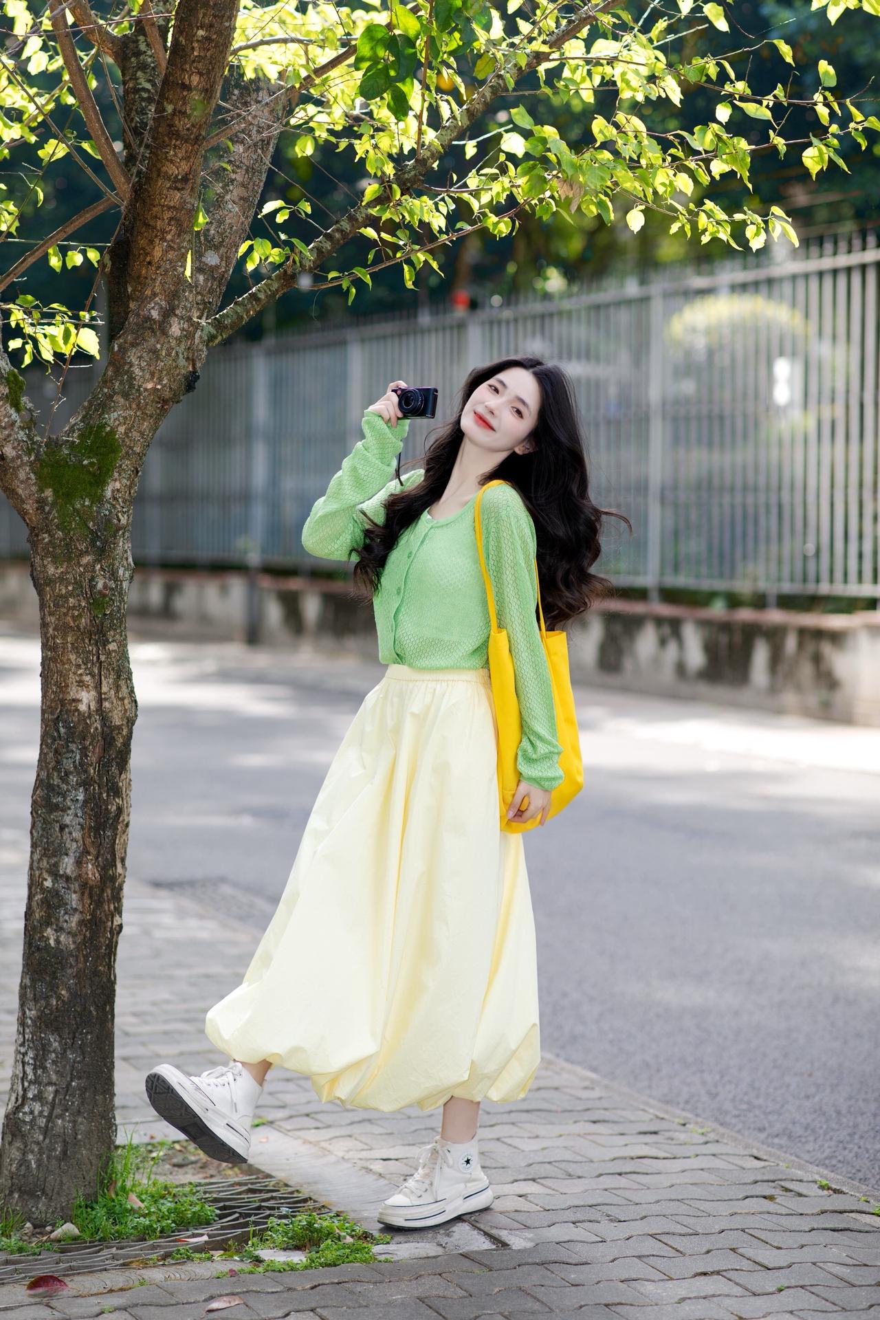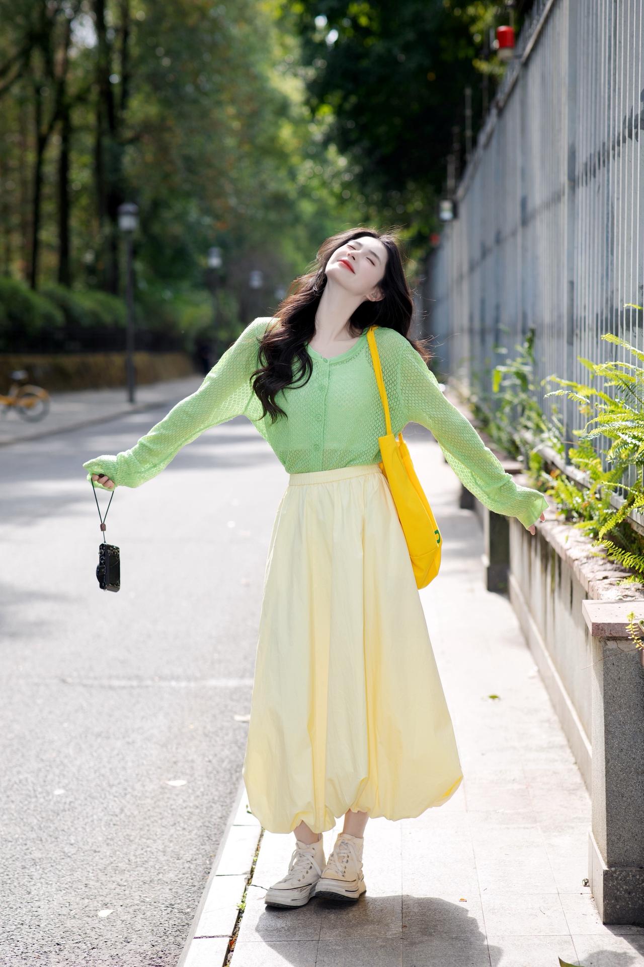 穿小裙子拍照,我最喜欢“坐着侧摆腿,单手遮阳看镜笑”这个姿势,不信你们看。 一