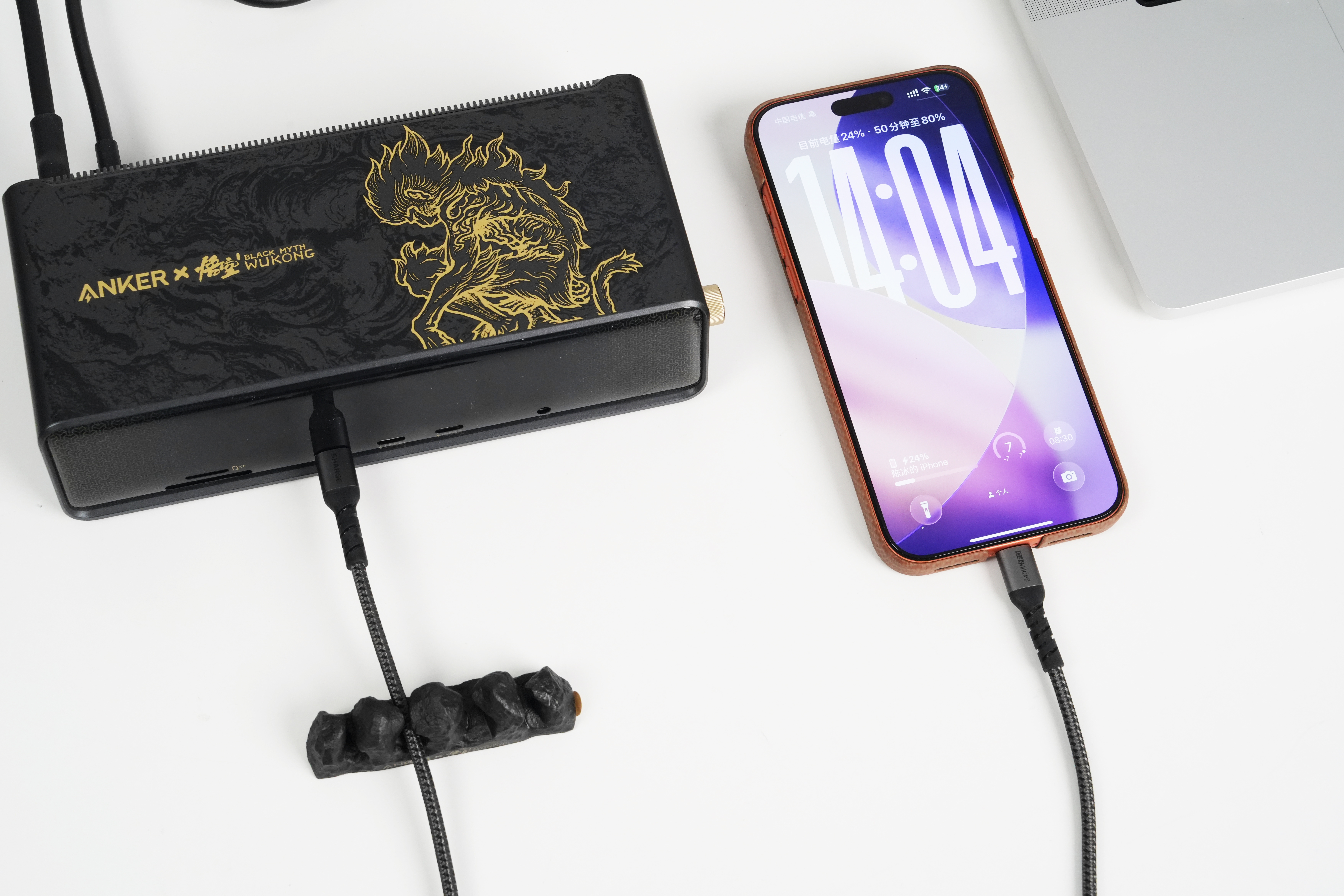 去年的黑神话悟空,很火!最近想买桌面充的设备,刚好看到安可家和黑神话悟空联名了,于是果断入手,这款心猿桌面拓展坞很酷,设计在线,做工精美,爱的不行!理线器就是五指山,有趣,从此我的桌面很干净了,也能连接四个显示器、14合一的接口很丰富,还可以智能交互,方便控制!对了,我也顺便也入手了它家的如意充电宝,也是联名款,帅的不行,140W、20000mAh大容量,也能智能交互,精致好看,喜欢的不行。