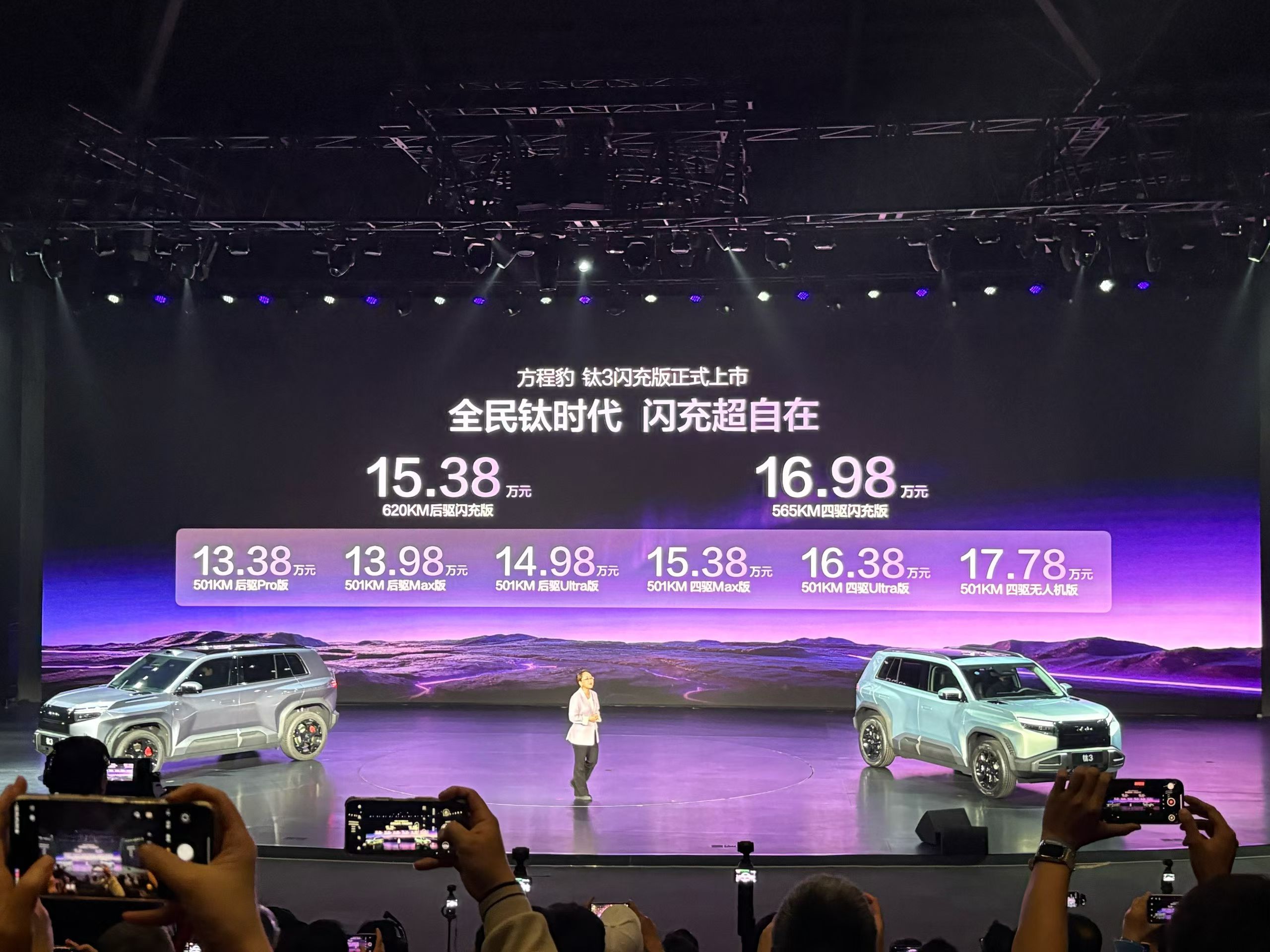 方程豹钛3闪充版正式上市两大全新版本,六大超值权益上市价格15.38万~16.98万元方程豹钛3闪充版上市发布会