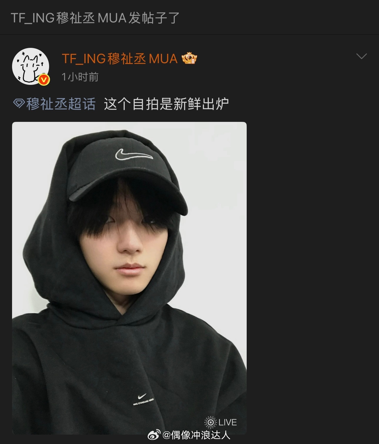 穆祉丞 个超穆祉丞空降超话。。发了新鲜出炉的自拍🤳(过两天再来)