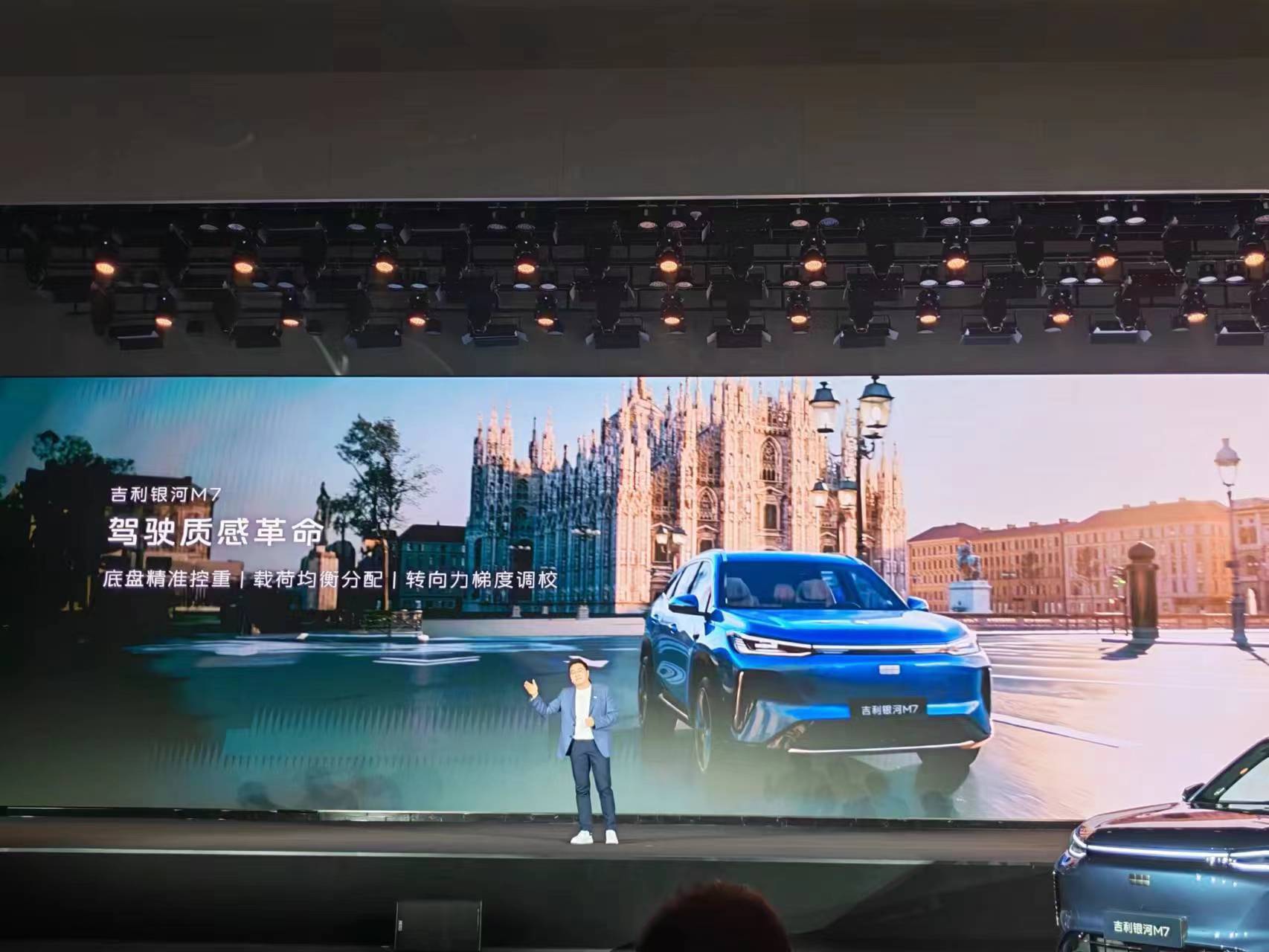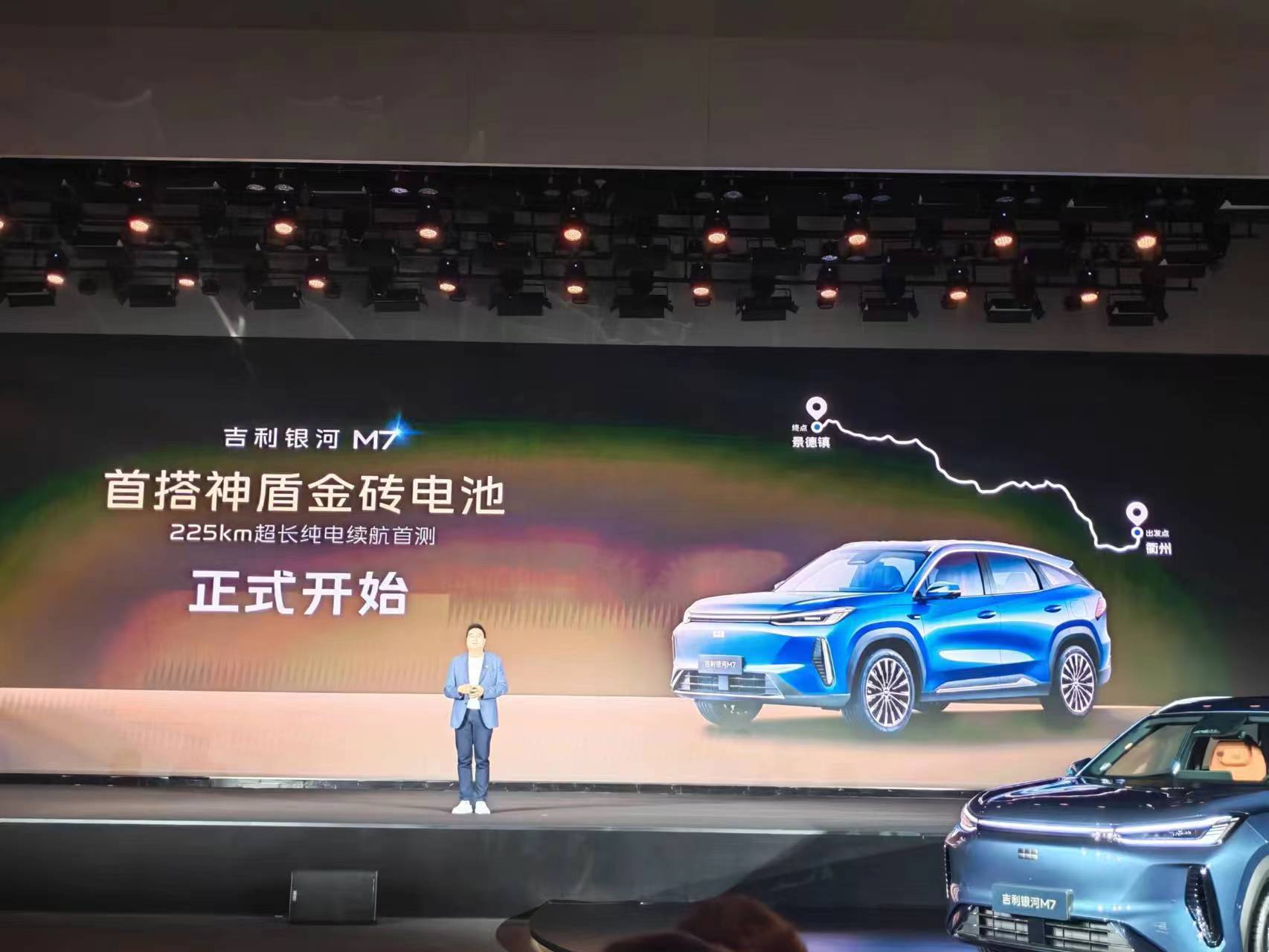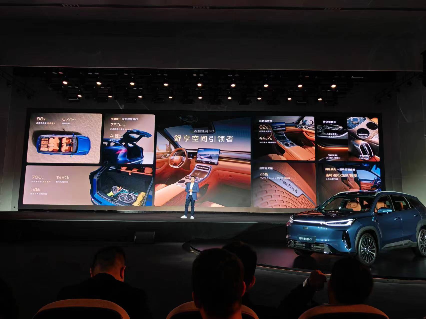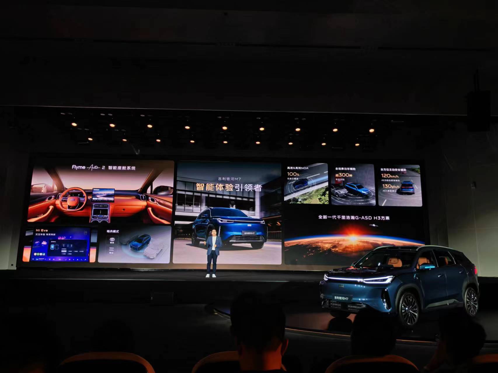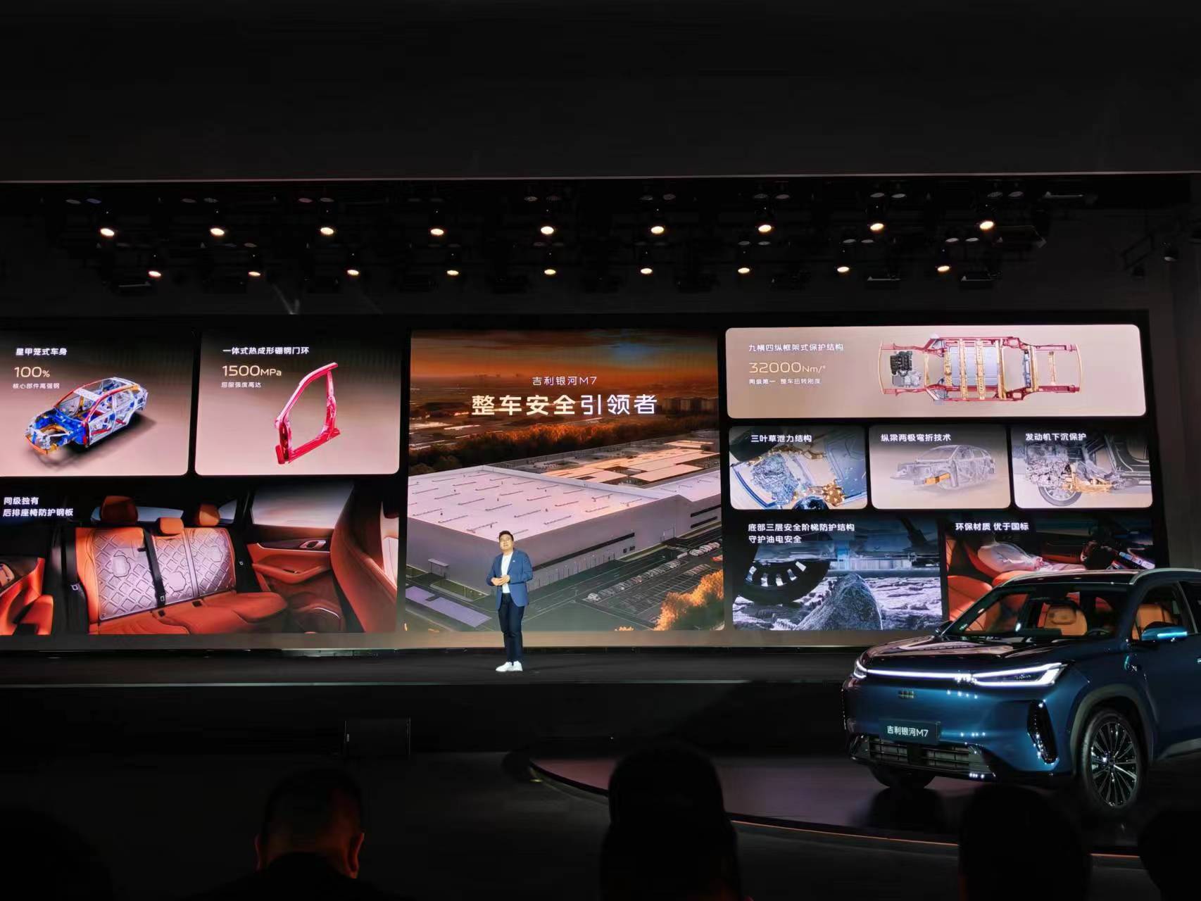 吉利银河M7吉利银河M系新成员来了吉利银河迈入长续航时代 今天我们来到吉利在衢州基地,来看吉利银河M7技术首秀。作为M系列首款主流电混SUV,新车基于GEA Evo架构打造,首发搭载神盾金砖电池,CLTC纯电续航最高达225km,满油满电综合续航1730km,亏电油耗低至3.35L/100km 。智能化方面,银河M7配备Flyme Auto 2智能座舱及龍鹰一号芯片,并搭载千里浩瀚H3智驾系统,支持高速NOA功能 。操控性能上,新车麋鹿测试成绩达81km/h,并配备全场景智能自适应悬架 。新车预计于上半年正式上市。