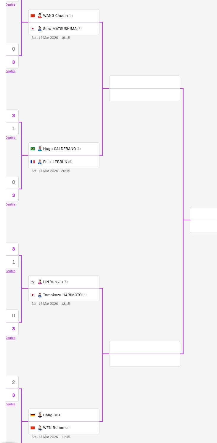重庆冠军赛男单八强全部产生。 国乒两席,王楚钦、温瑞博。 日乒两席,张本智和、松岛辉空。 德乒邱党、法乒小布、省队林昀儒、巴西雨果。 这8个人中只有邱党、温瑞博不是种子选手。 明天将进行八进四的比赛。