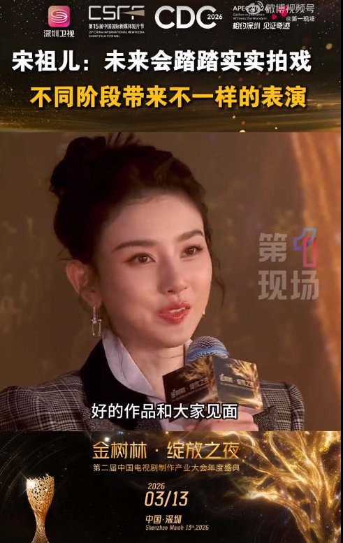 宋祖儿再现折腰经典台词 《折腰》团队亮相金树林,宋祖儿用剧中台词送美好祝愿,超贴心!谈及工作计划,她称会踏实拍戏,带来不同表演!