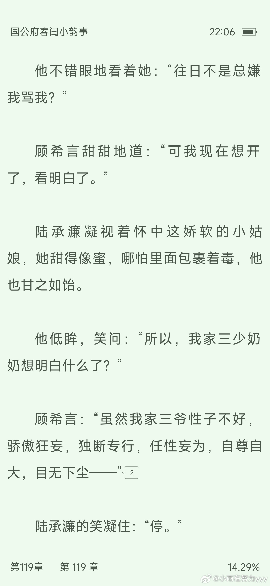 晚上躺在暖烘烘的被窝里,捧着甜甜的小说,太幸福了。以及女王不在家写得真好,活泼灵动小娘子和傲娇宠妻贵公子,if线太美味了甜甜甜!!!