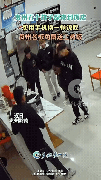 贵阳上大分!在贵阳开隆江猪脚饭的贺老板,2026年3月9号的深夜,店内突然进来五名十六七岁的男孩子。有一个还染着黄头发,穿的衣服也不错,鞋子还是耐克的。想不到5个人进来后,很和气地找到老板,有一个从口袋里掏出手机,问老板能不能用这部手机給五个人换餐饭吃。 在那个窄巴巴、只放得下四张桌子的隆江猪脚饭小店里,贺老板本来已经打算拧灭那盏昏黄的灯火了。结果门帘一掀,钻进来五个半大孩子。要是在十来年前,这时候进来一群染着黄头发、穿着运动卫衣的少年,换谁心里都要咯噔一下。可这几位不一样,虽然打头的那位那一头金发在路灯下晃眼,脚上的名牌球鞋也没落灰。但他们往柜台前一站,没有那种浑不吝的野性,反倒透着一股子快要把头低到胸口里的局促。 这画面,硬生生把贺老板到嘴边的“打烊了”三个字给堵了回去。他盯着那个递过来的手机,又看看几个孩子空荡荡的肚子方向,心里头那盏灯,反倒比头顶的灯泡还亮堂。他接过来瞅了一眼,好家伙,iPhone最新款,比自己店里那台收款的旧手机还金贵。 贺老板没接那手机,转身就奔后厨去了。几分钟后端出五碗热气腾腾的猪脚饭,肉码得冒尖,卤汁浇得透透的。“吃吧,手机收起来,那玩意儿我不缺。”他话说得平淡,几个孩子的眼眶却红了。打头的黄毛少年执意要把手机押在店里,说第二天拿钱来赎。 贺老板一巴掌拍他肩膀上,笑得爽快:“小小年纪,别整江湖那一套。谁还没个难处?我这店开着,就是给人吃饭的。”五个孩子闷头吃饭,店里安静得只听得见碗筷碰撞声,可那股子暖意,比后厨的卤锅还滚烫。 第二天中午,饭点最忙的时候,那黄毛小子真回来了。他往柜台拍下一百块钱,红着脸说昨晚太饿,手机导航找了半天才找到这家还亮着灯的店。贺老板推辞不要,他急得眼眶又红了:“叔,你不收,我们五个心里过不去这个坎。” 这事传开后,有人笑贺老板傻,那手机转手卖了够买几十碗饭。可更多人竖起大拇指,说这才是贵阳人的仗义,是这座城市刻在骨子里的温度。那个窄小的猪脚饭店,一夜之间成了很多人心里的地标。有网友翻出地图,发现那附近确实有几所中学,深夜饿肚子的少年,或许就是刚下晚自习的住校生。 生活哪有那么多轰轰烈烈的大道理。无非是深夜街头,一碗热饭,接住了一群孩子的窘迫。贺老板可能不知道,他那晚接住的,不只是五个孩子的饥饿,更是他们在这个年纪对陌生人、对这座城市的全部信任。那部没押下的手机,成了一个体面的台阶,让他们把尊严完完整整地带走了。 麻烦看官老爷们右上角点击一下“关注”,既方便您进行讨论和分享,又能给您带来不一样的参与感,感谢您的支持!各位读者你们怎么看?欢迎在评论区讨论。
