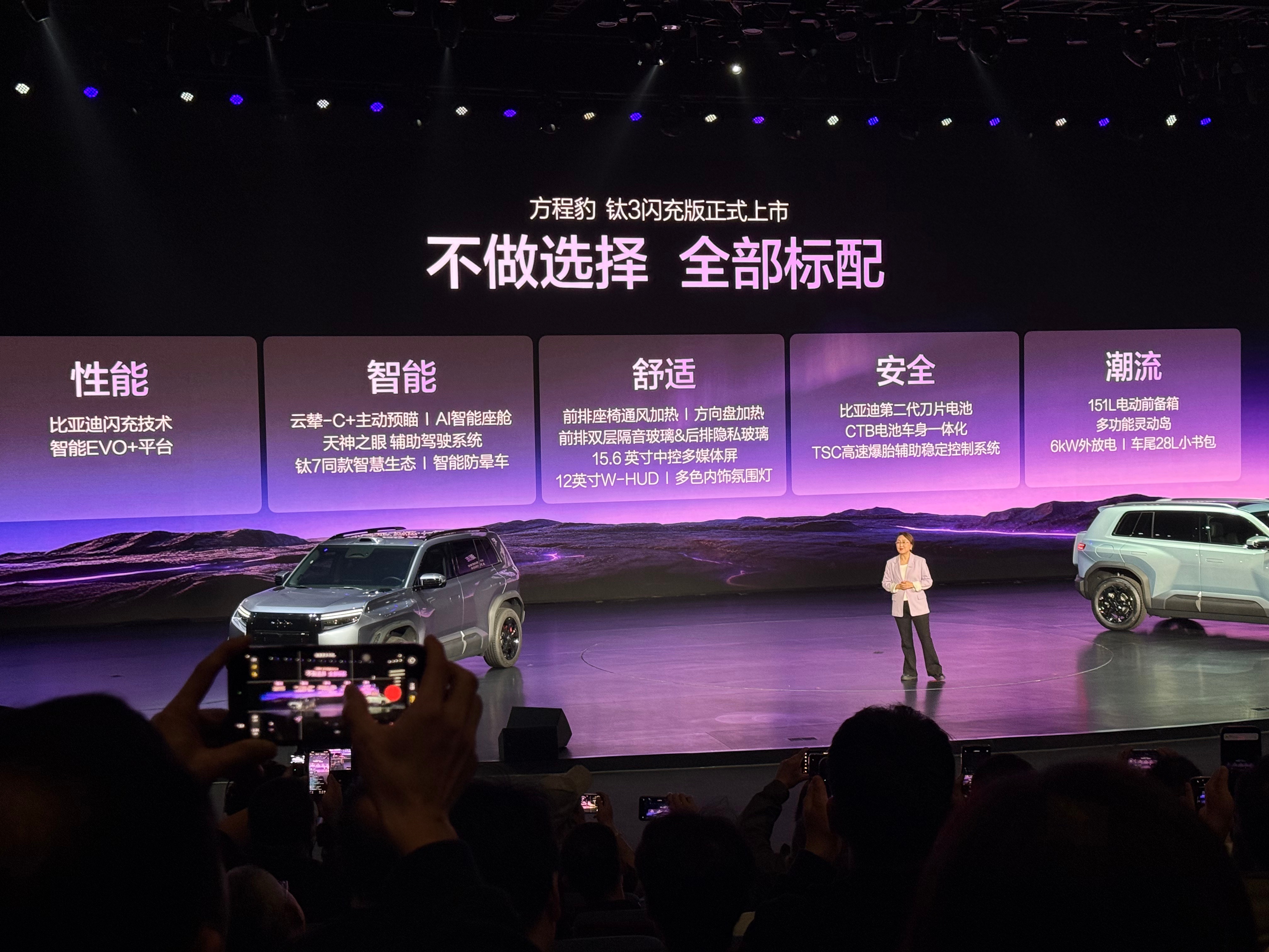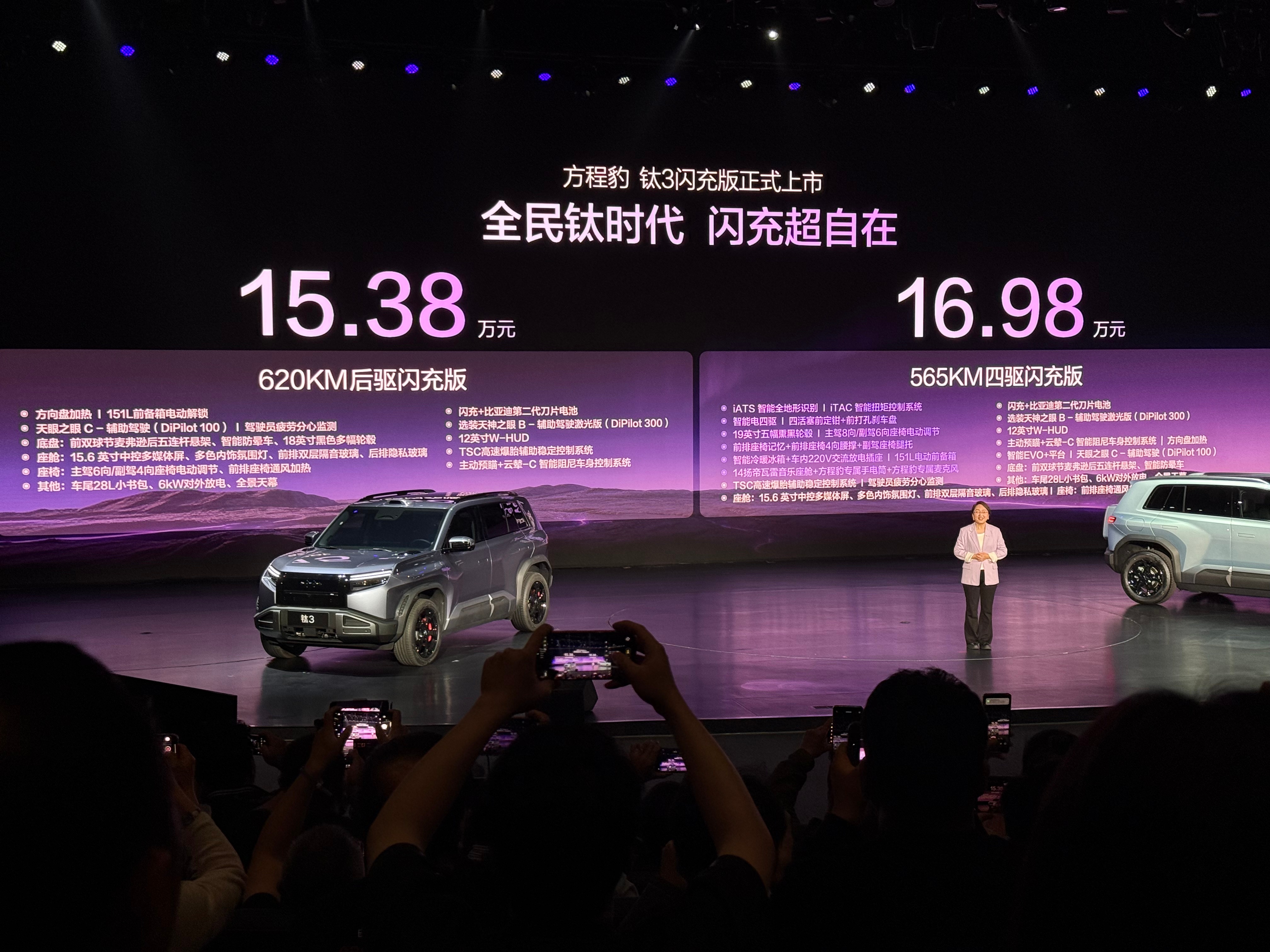 不过今天方程豹钛3闪充版15.38万起的时候,我都有点儿懵了,这感觉比老款价格还低呢,老款全系501km,这个两驱版是620km。另外免费充电时间也是干到了18个月。