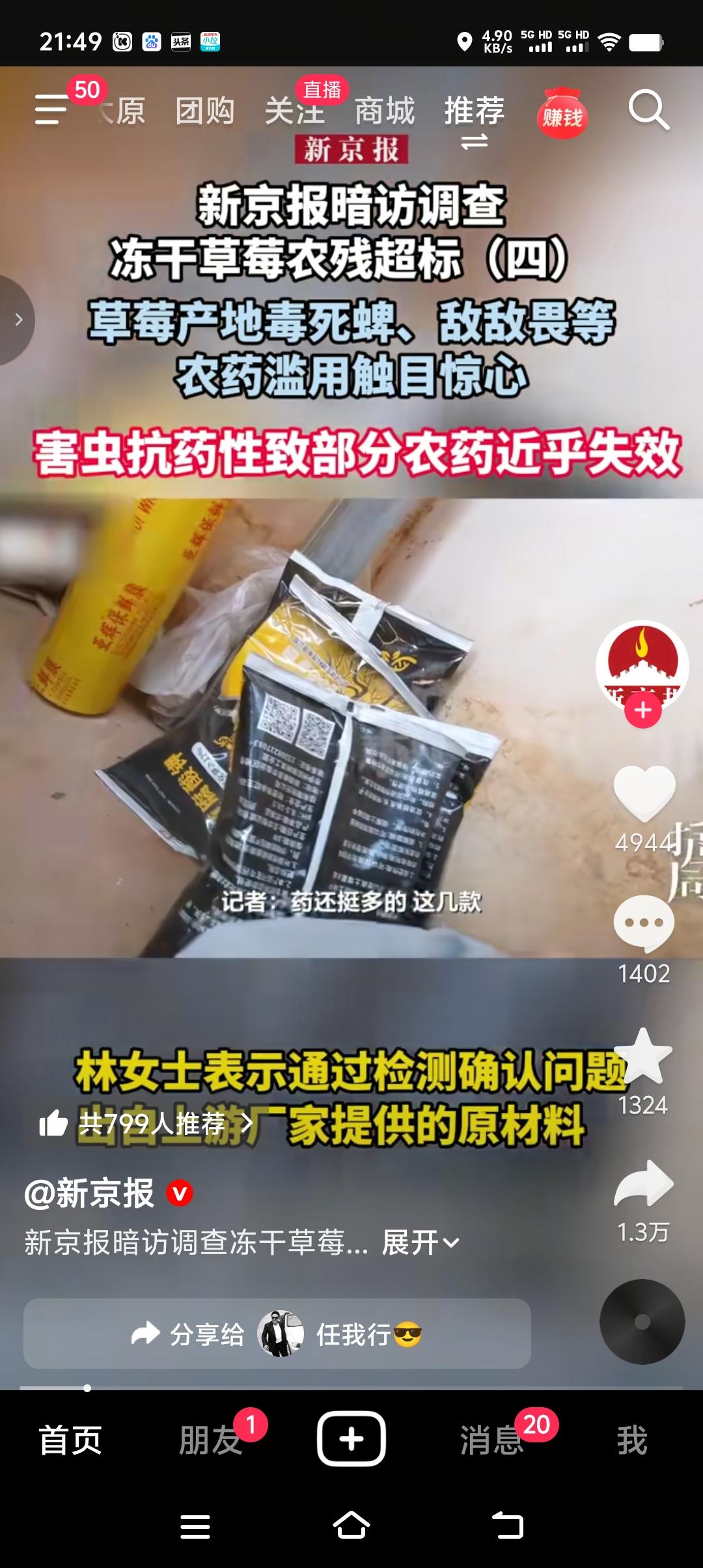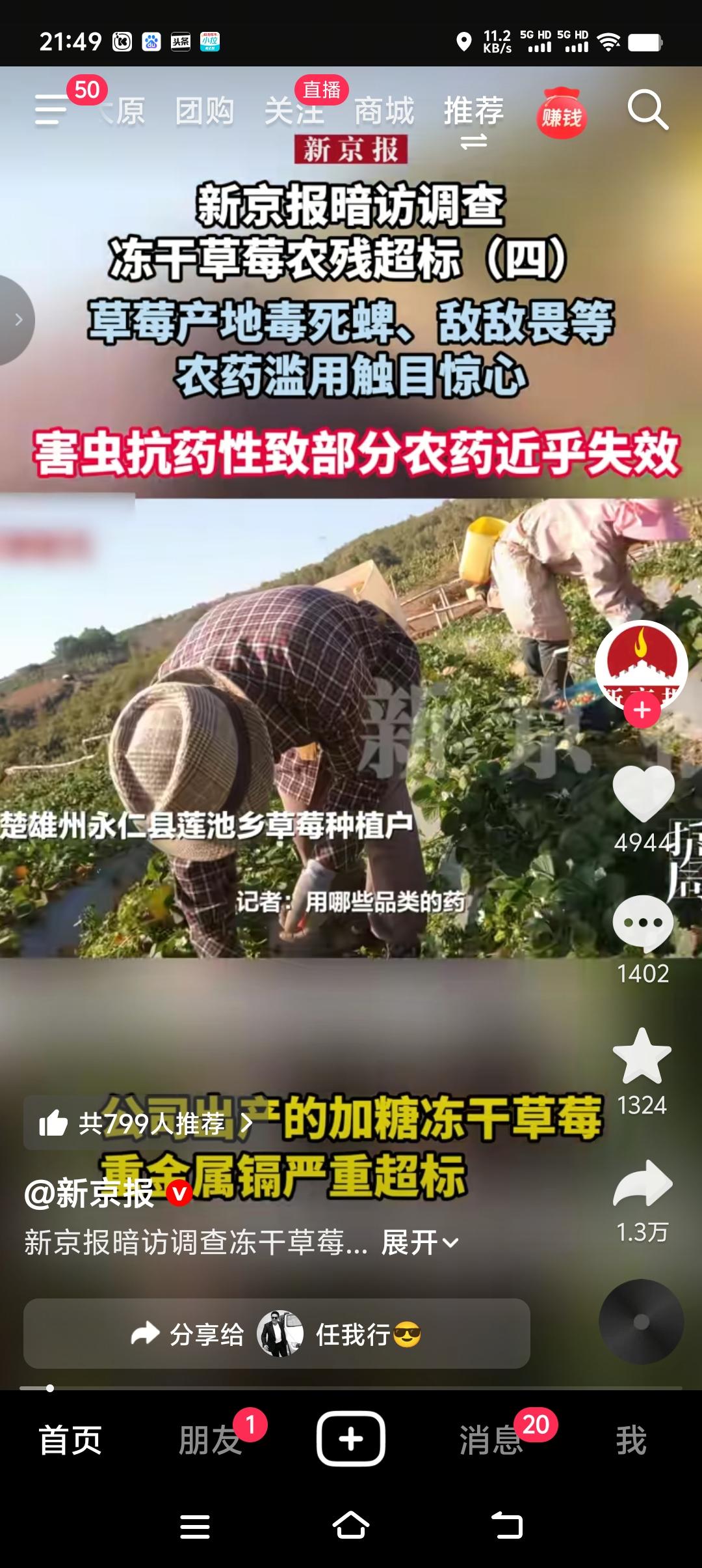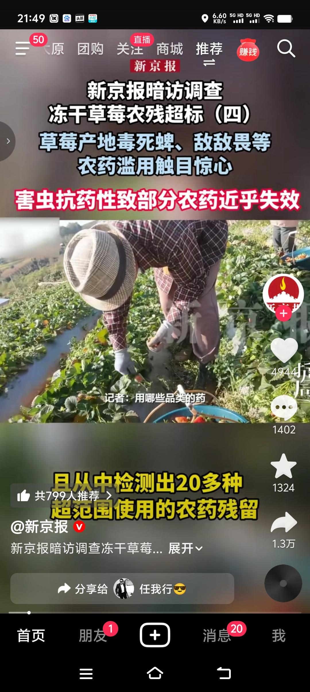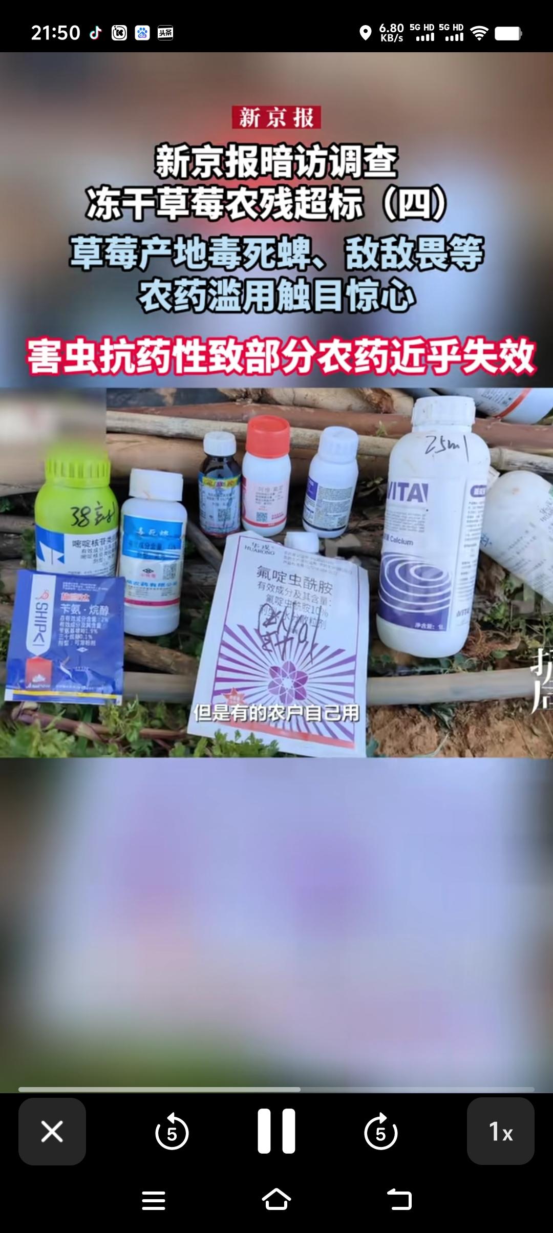 不看不知道,一看吓一跳。知道草莓打农药,却不知道打的是毒药,毒死蜱、敌敌畏、敌草快等农药。更为可怕的是由于频繁打农药,有些虫子已经对这些农药产生抗药性了,农户们自然而然想到了药性更强或药量更多的农药。因为在这些农户眼里,只有经济利益,根本不顾及他人的生命安全。 光鲜亮丽的背后却是归功于各种农药的功劳,我们只知道草莓、车厘子、枇杷甘、阳光玫瑰等水果又大又好吃,却不知道它违背了大自然生长规律,更是违背了人类道德良心底线。