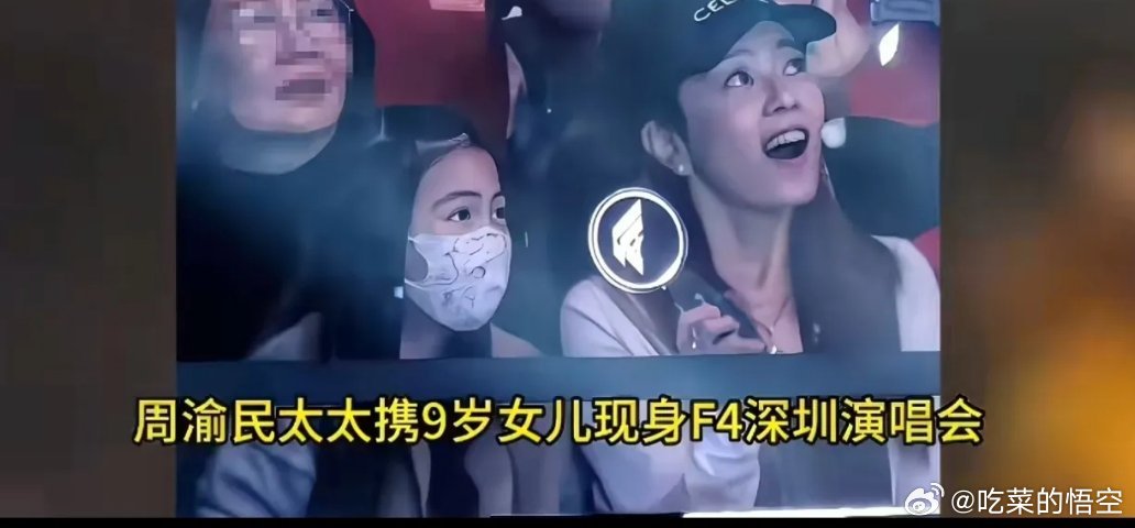 3月12日F4在深圳开演唱会,朱孝天没出现,阿信又顶上了。更惊喜的是周渝民妻女现身观众席。这是38岁的喻虹渊和9岁多女儿首度公开亮相。