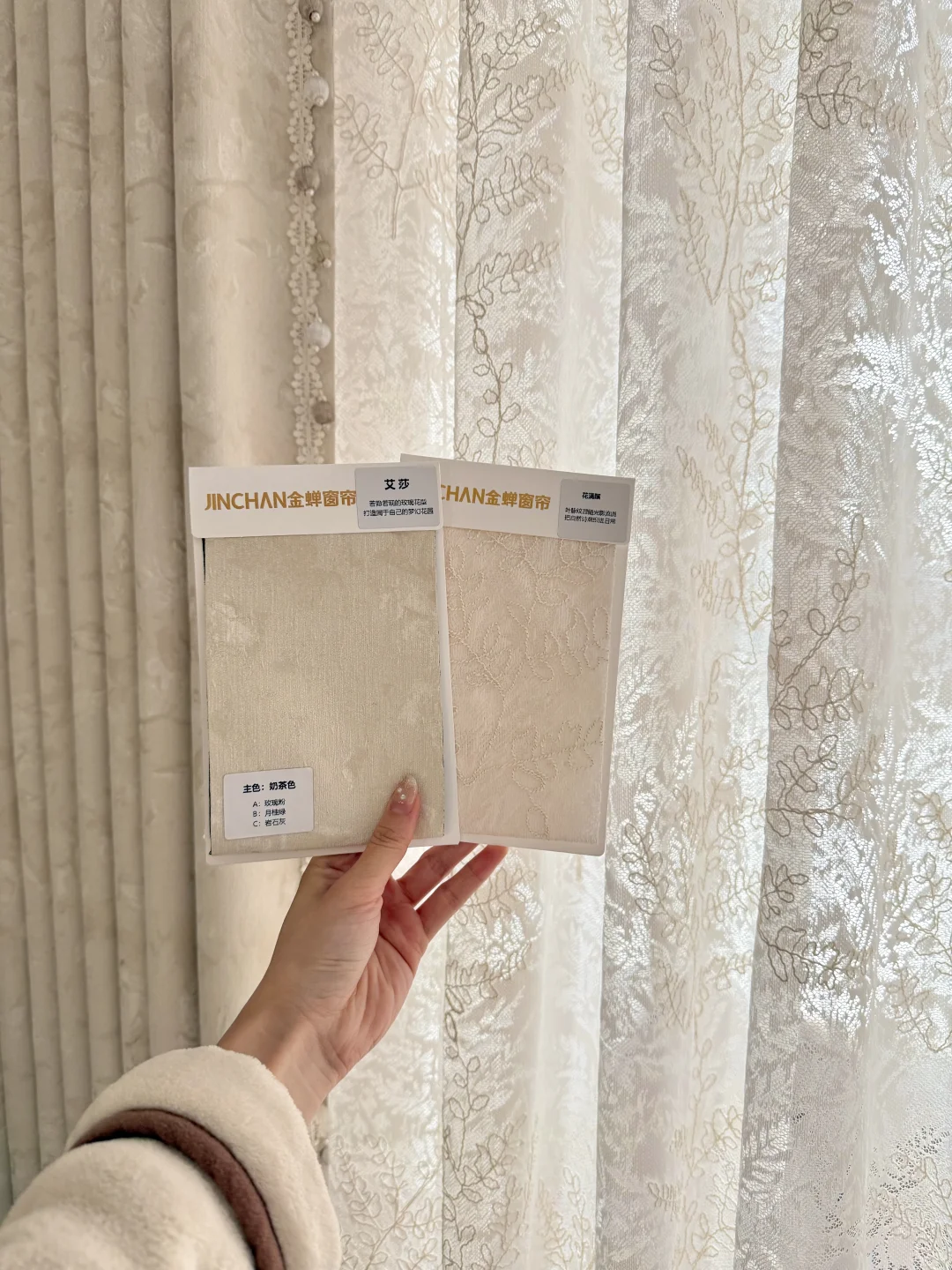 直到换上金蝉家的【艾莎】奶茶色布帘+【花满蹊】纱帘