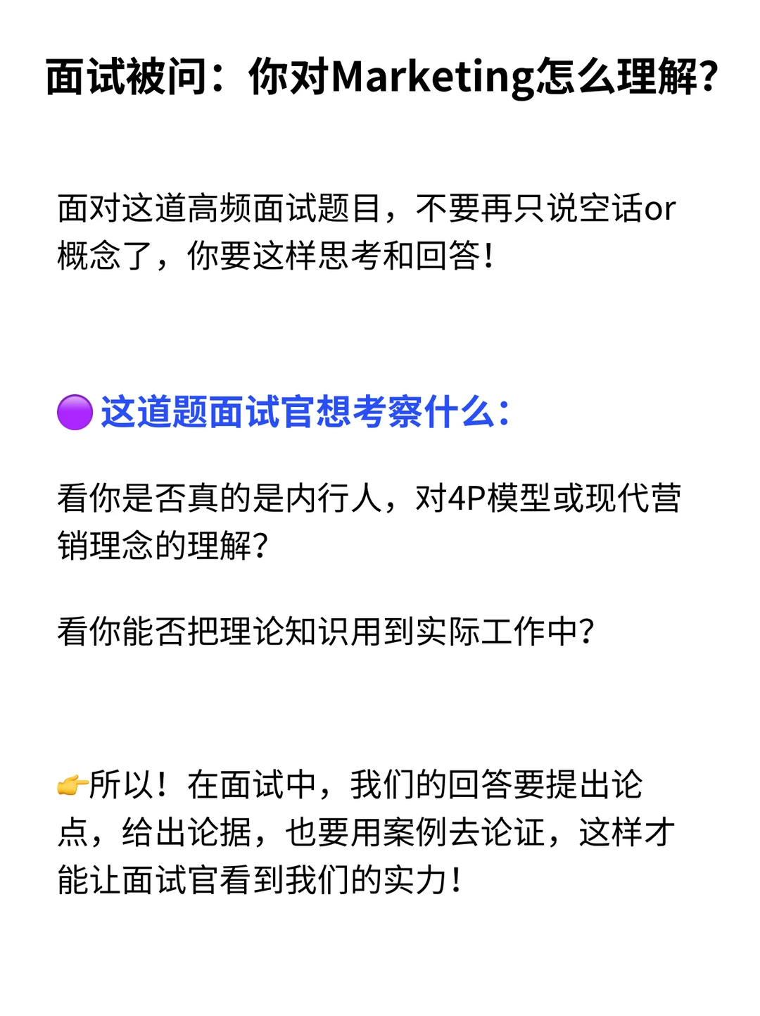 ✅划重点! 回答时,记住这个公式:亮观点 + 摆依据 + 讲实例