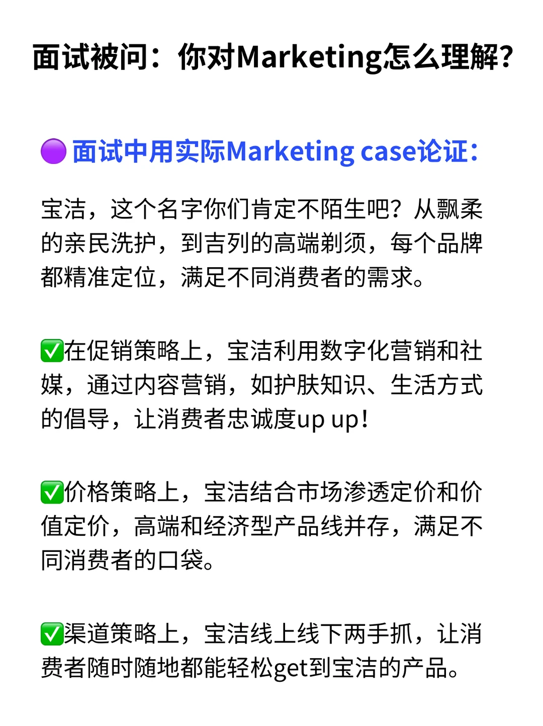 光说概念太虚,用宝洁的实际case演示怎么用4P思维答面试题~(具体内容👀见图)