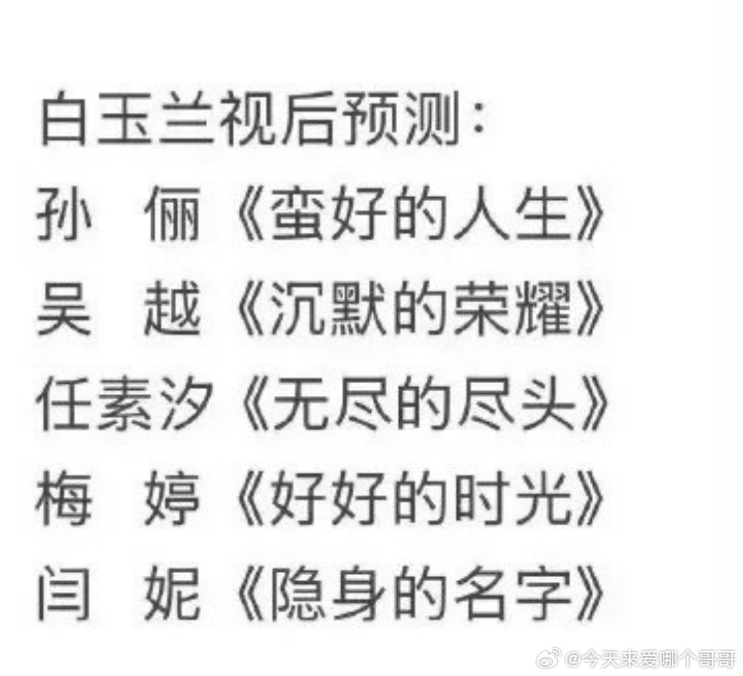 2026白玉兰视帝视后提名预测
