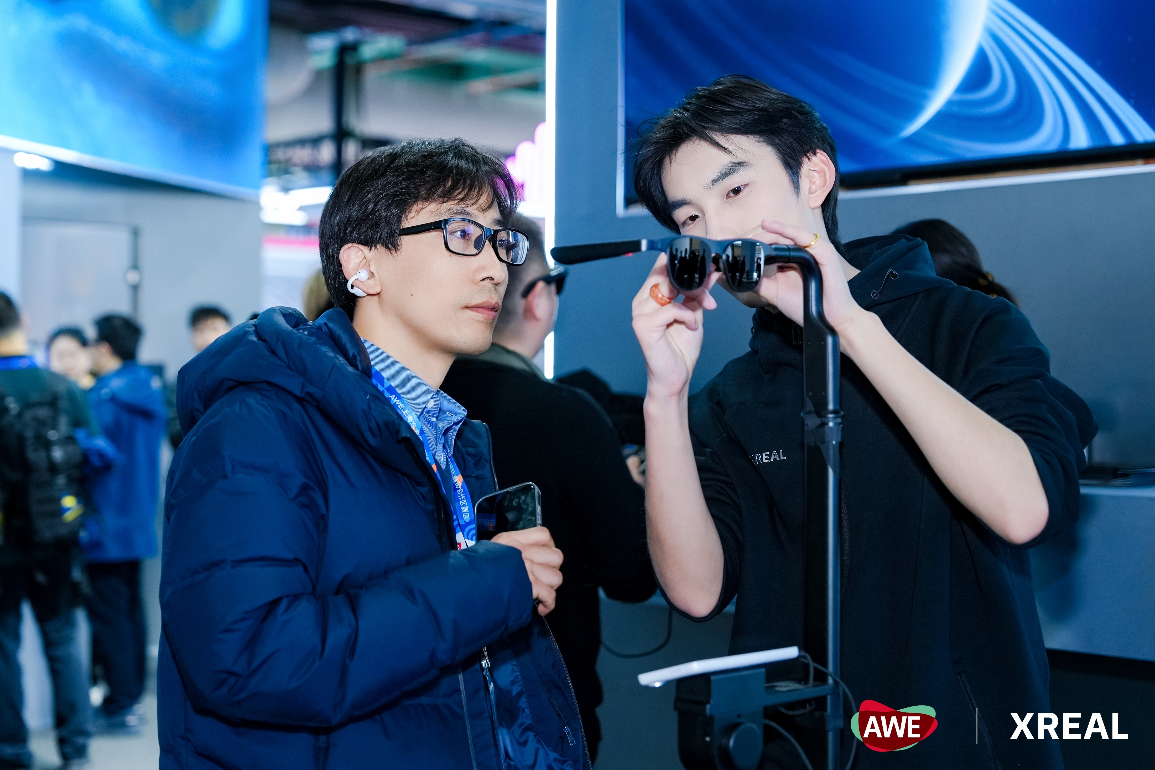 AWE2026AWE2026有哪些亮点AWE2026上的AI看点 AWE的第一天就直奔XREAL 展台, 作为 AR 领域的老玩家,他家这次以 “AI,拭目以戴” 为主题,直接把 AI 时代的视觉体验玩明白了。主展品 XREAL 1S 超亮眼,不仅拿下艾普兰创新奖,500 英寸等效空间巨幕 + 52°FOV 沉浸视野,直连电脑办公超爽,多窗口并行效率拉满。自研的 X1 空间计算芯片还斩获核芯奖,3 毫秒超低延迟彻底解决佩戴眩晕,现场试了 2D 转 3D,丝滑到离谱!还有旗舰 One Pro 的 556 英寸巨幕、全球首款 240Hz 电竞 AR 眼镜 ROG XREAL R1,电竞党直接狂喜,全设备低延迟接入超适配。和 Google 合作的 Project Aura 也超有看点,从硬件到生态全拉满,戴上眼镜就把 AI 信息流戴在眼前,这才是未来智慧生活的正确打开方式!