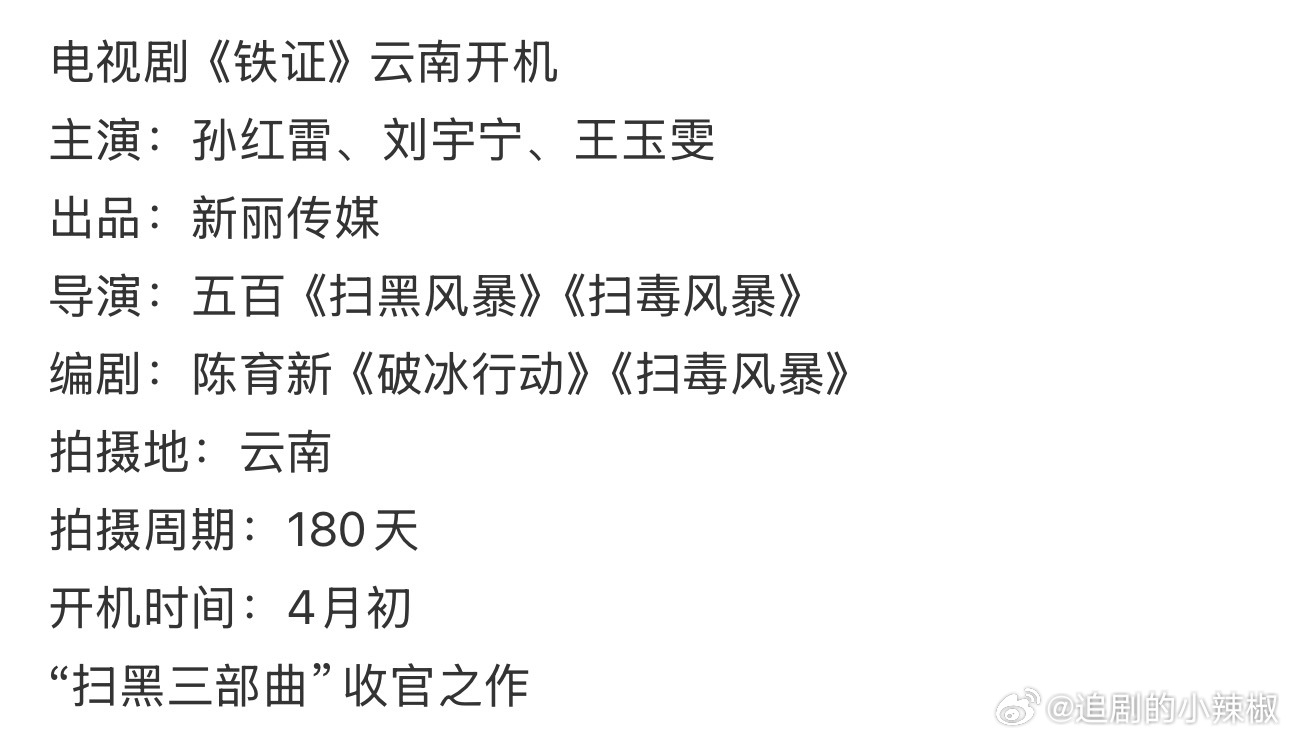 🍉《铁证》主演暂定孙红雷、刘宇宁、王玉雯,即将云南开机,这🍪比新丽的古偶香多了,正剧老班底