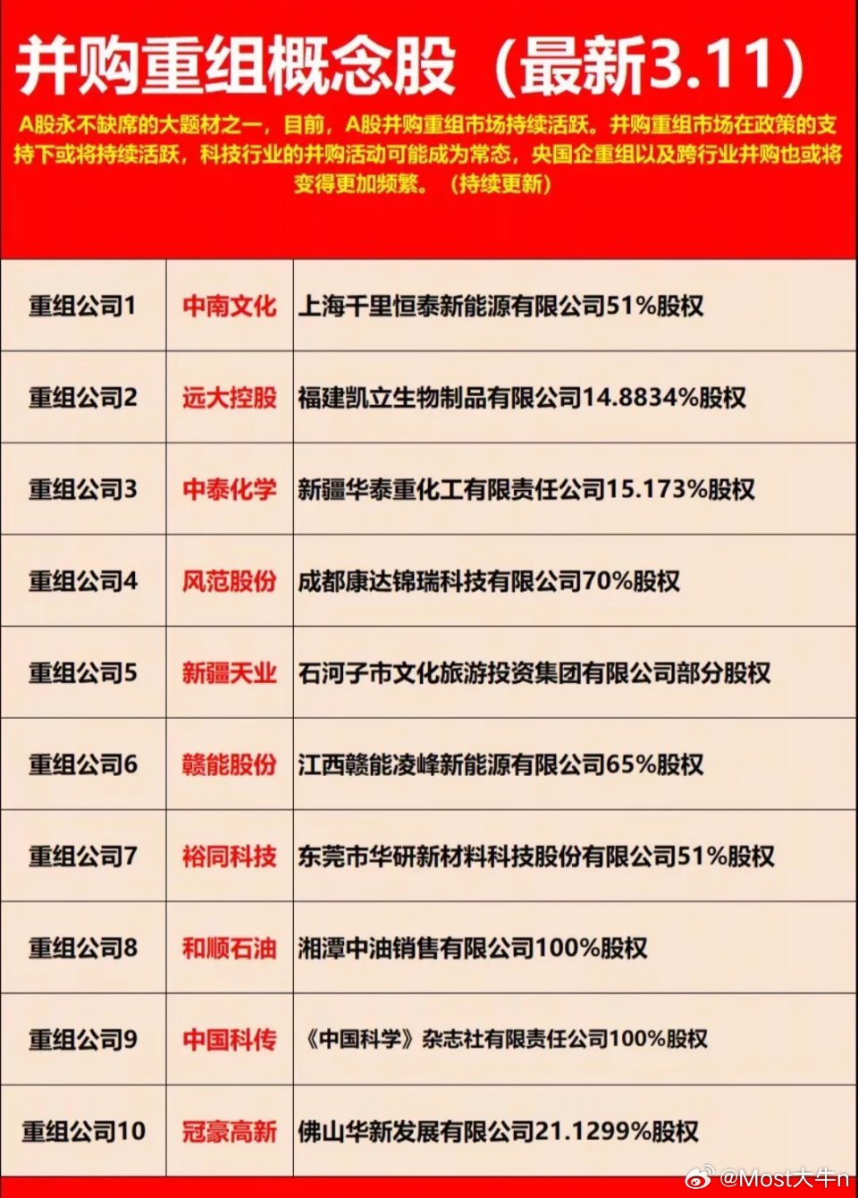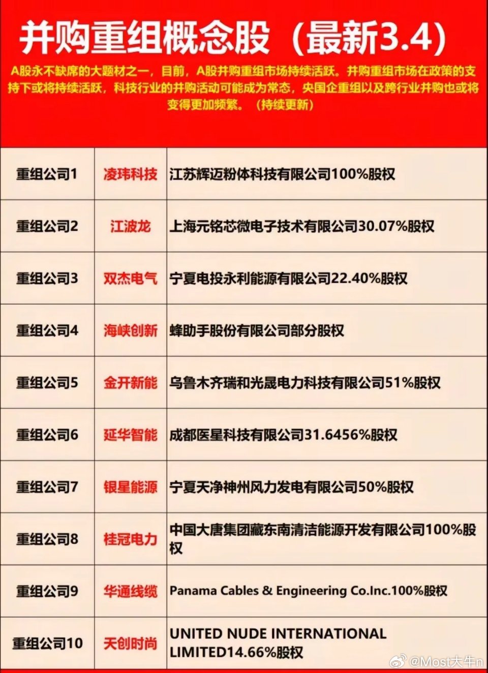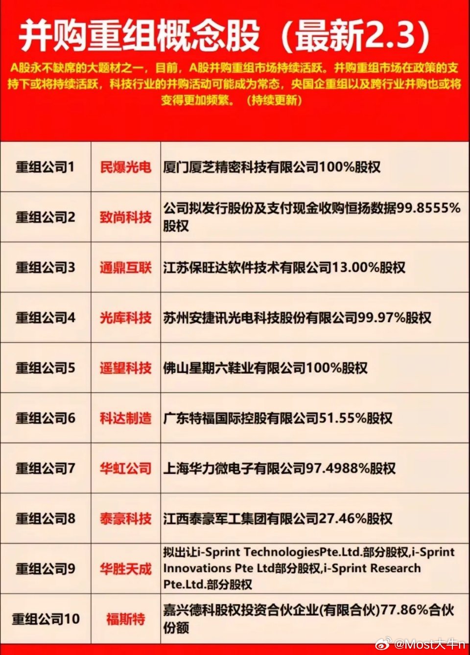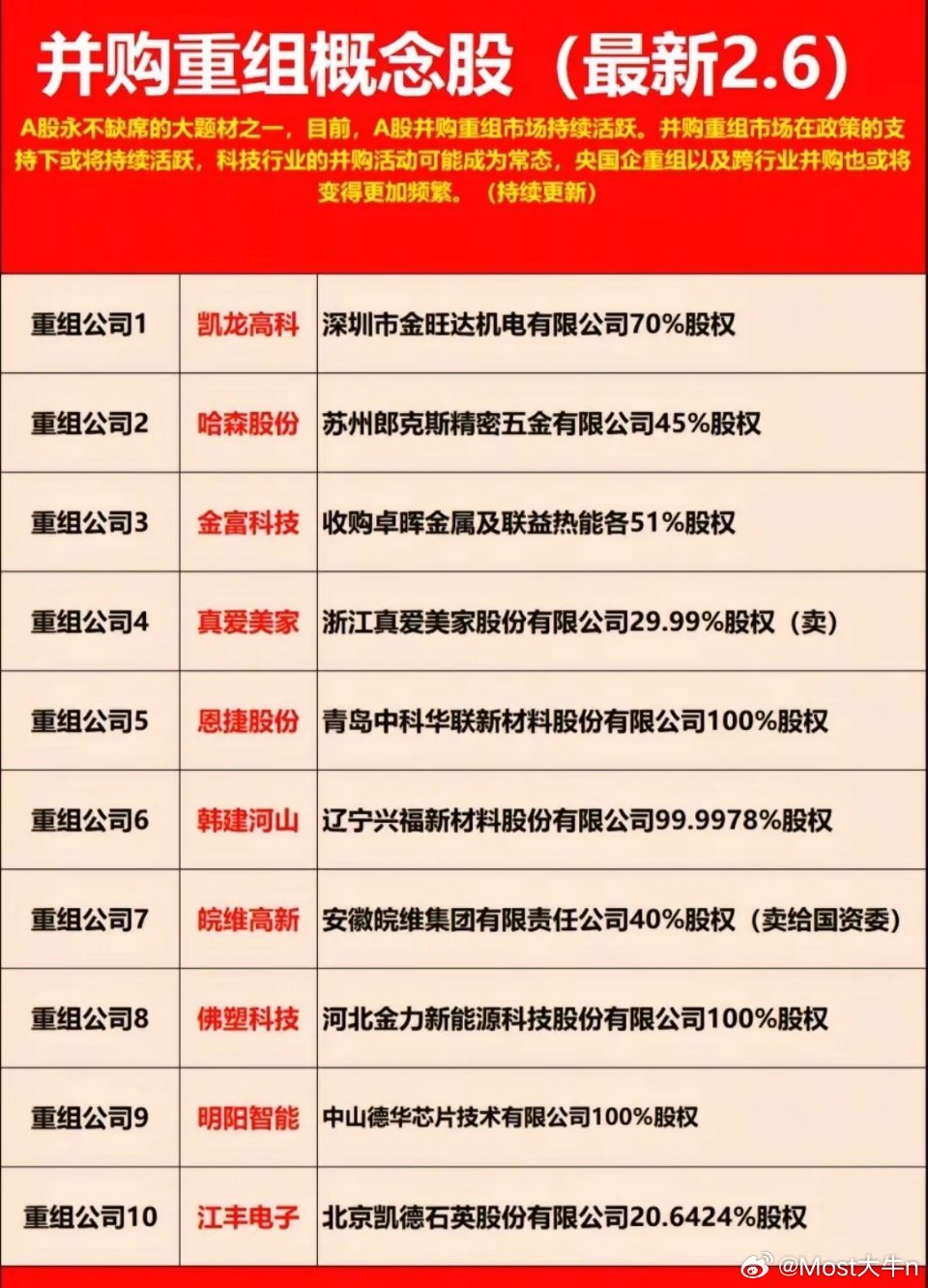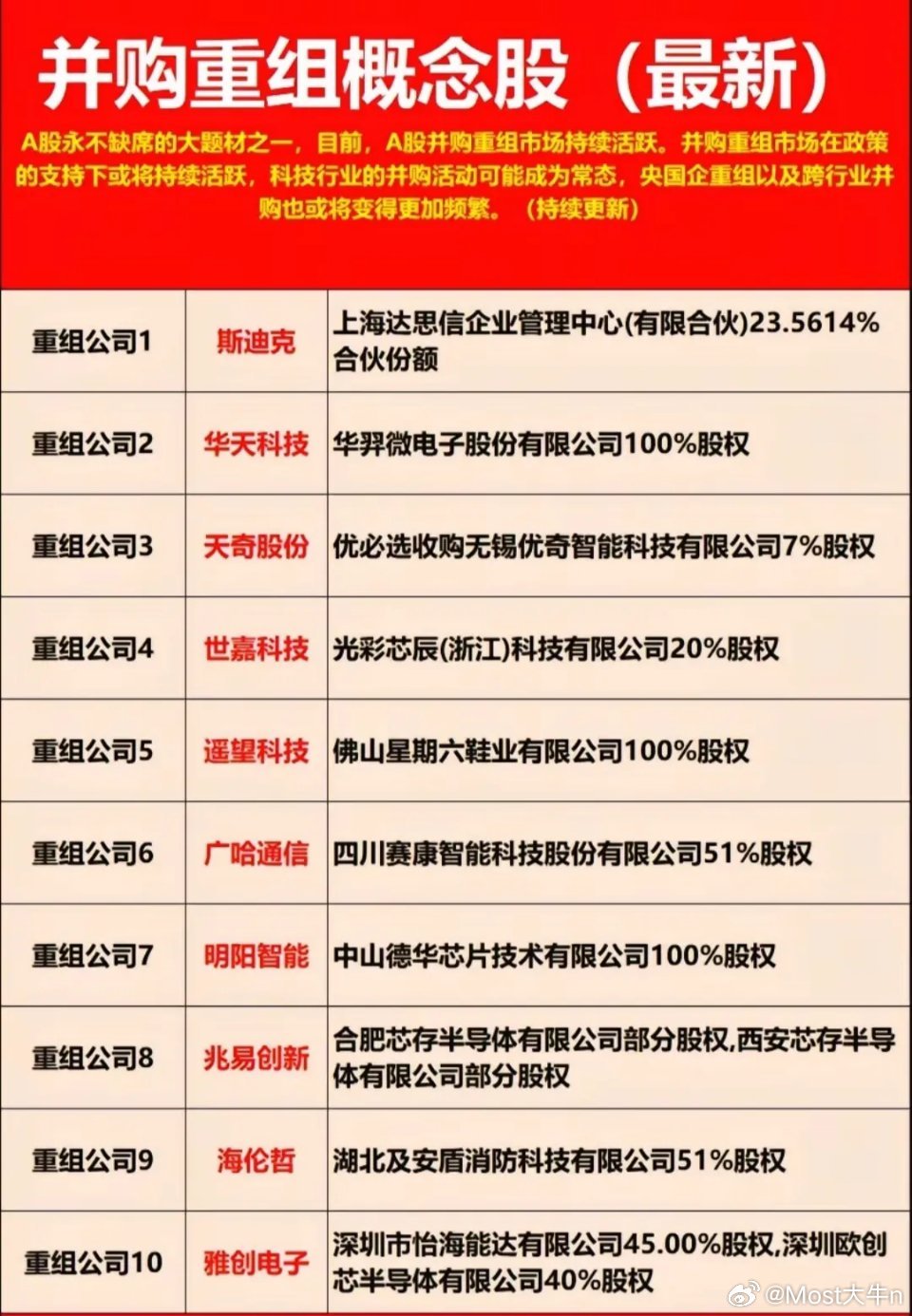 并购重组主线梳理:科技/新能源/军工核心标的一览!