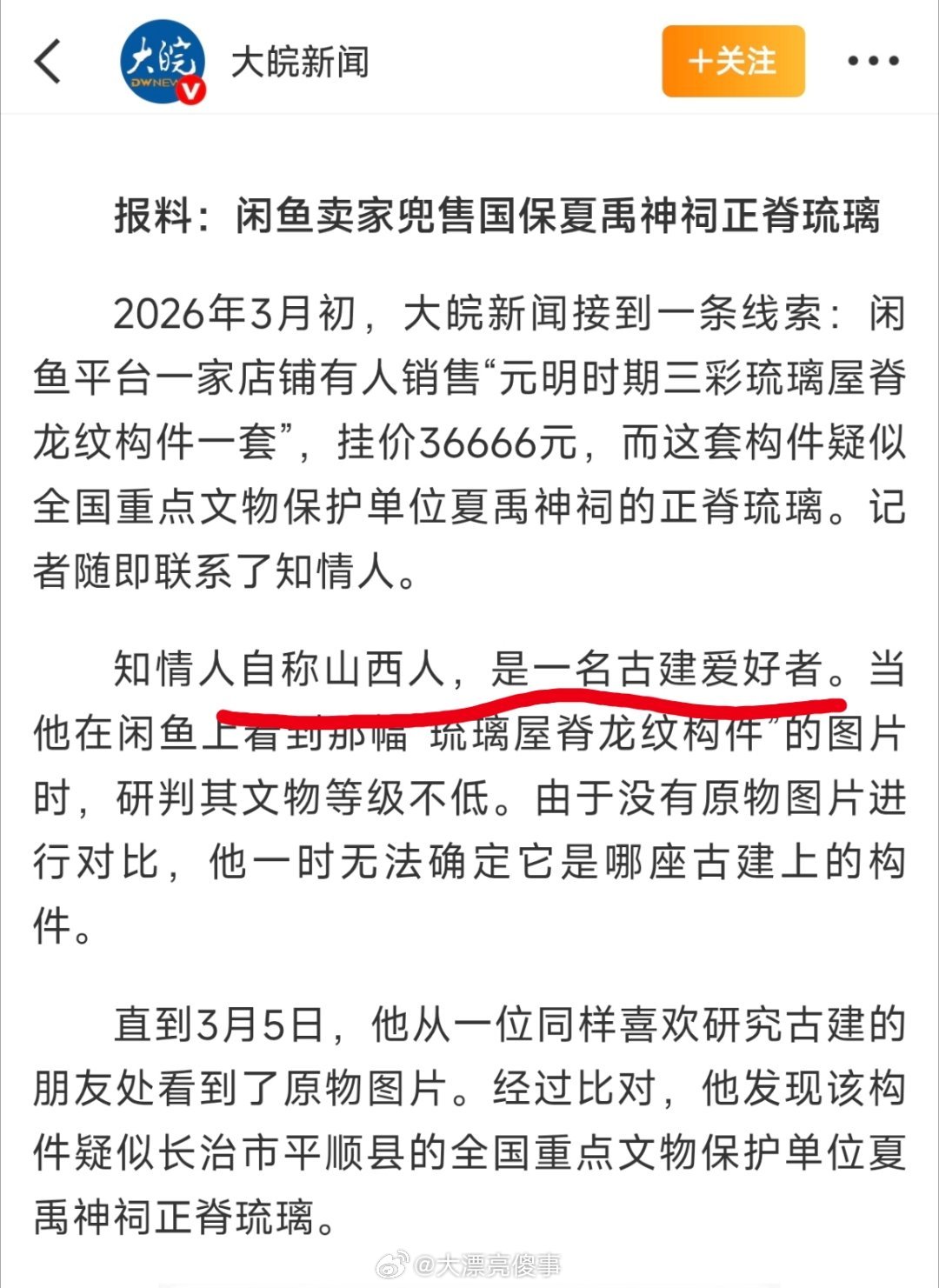 事情是怎么被发现的呢?一个古建筑爱好者看闲鱼的时候认出来了这东西是文物。