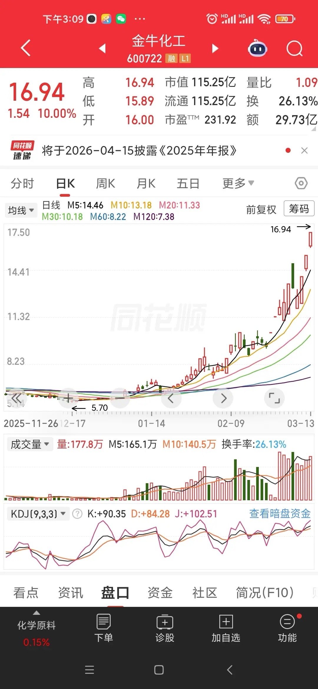 2026年3月13日市场高度板14板:9板:6板:5板:中南文化4板:华电能源3板:金牛化工2板:三房巷、法尔胜、大金重工、潞化科技、郑州煤电 市场大跌,金牛化工加速赶顶。华电能源下影线洗盘随后涨停,绿色发电一路走低。爱的越深,伤的越狠。 电力大跌,石油回调,算力不涨这就是当下市场的局面。股民是不是太难了?左右都是坑。 股票不涨其实是大概率事件,涨的不管何时何地都是少数。有人想追求高收益连续几次过山车账户就腰斩了,韭菜不割不涨,割的多了就黄了。不动还好,真的是紧箍咒越动越紧。 市场没有热点,有人强行启动魔盒只能是大亏。热点需要资金共同打造,环境不好资金萎缩。冷静分析、深度思考。不作为买卖依据,仅仅是复盘记欢迎大家点赞、留言、关注