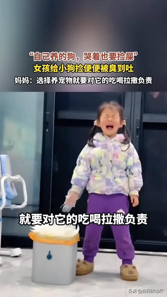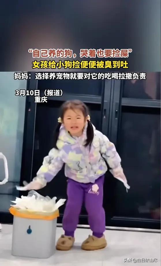 “笑不活了!”近日,重庆,一女孩见小狗可爱,便将它买回了家,可小狗粪便很臭,女孩不想捡粪便的时候,妈妈就说要将小狗送人,于是女孩只能一边哭一遍戴手套,把粪便捡到垃圾桶里,最后直接被熏得吐了出来!网友:自己要养的狗,哭着也要把便便捡完! 重庆一位年轻女孩,因为一时被可爱萌化了心,把一只小巧的狗狗带回了家,本以为开启的是撸狗的幸福日常,没想到最先迎接她的,是清理粪便的“崩溃时刻”,这段又好笑又真实的画面,让无数网友看得直呼太有共鸣了。 女孩在街上偶遇这只小狗时,瞬间被软萌的外表吸引,毛茸茸的身子、无辜的眼神,让她当场下定决心要把狗狗带回家照顾。 没有过多犹豫,女孩直接办理了领养手续,满心欢喜地将小生命带回住处,脑海里全是和狗狗温馨相处的画面,完全没考虑到饲养过程中最现实、最琐碎的问题。 狗狗刚到新家的前几天,确实给家里带来了不少欢乐,活泼好动的模样让整个屋子都多了生气,女孩也沉浸在拥有宠物的喜悦里。 可随着相处时间变长,狗狗正常的生理问题开始显现,排便后的气味格外浓烈,狭小的空间里,异味很快弥漫开来,让女孩难以忍受。 面对狗狗留下的粪便,女孩始终不愿意动手清理,每次都下意识躲开,能拖就拖,完全没有承担起饲养宠物的责任。 家里的异味越来越重,妈妈看到女孩始终不愿处理,也没有主动帮忙收拾,直接表明态度,如果一直不负责清理狗狗的排泄物,就只能把小狗送给愿意照顾的人,不再让女孩继续饲养。 女孩舍不得刚养没多久的小狗,更不想让心爱的宠物被送走,在不舍与抗拒的情绪交织下,只能不情不愿地开始处理粪便。 她哭哭啼啼地套上一次性手套,一边掉眼泪一边小心翼翼地将地上的粪便捡起,放进一旁的垃圾桶里,全程眉头紧锁,满脸都是抗拒。 即便戴了手套,浓烈的气味依旧不断袭来,刺鼻的味道让女孩难以承受,情绪和生理上的双重不适叠加在一起,捡着捡着就控制不住地干呕,最后直接被熏得弯腰吐了出来,眼泪流得更凶,模样既狼狈又好笑。 整个过程被家人记录下来,画面里女孩哭得上气不接下气,手上的动作却没停下,一边嫌弃一边不得不坚持收拾,强烈的反差感充满喜感。 视频被分享到网络后,迅速引来大批网友围观,大家被这真实又搞笑的一幕戳中笑点,纷纷留言调侃。 不少养过宠物的网友表示感同身受,喜欢宠物的可爱,就要接受饲养的所有琐碎,这是最基本的责任。 还有网友直接打趣,自己选的小狗,哭着也要把屎捡完,既然决定饲养,就不能只享受快乐,忽略该承担的义务。 这段看似搞笑的日常,藏着最真实的宠物饲养现状,也让很多人明白,喜欢和责任从来都分不开,萌宠带来治愈的同时,也需要主人用心付出、耐心照料。 对此,你们有什么看法,欢迎评论留言~