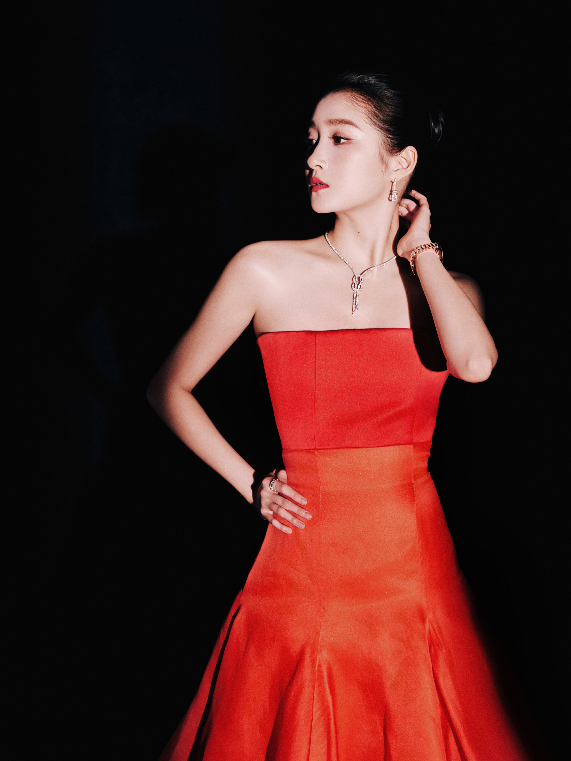 关晓彤:帷幕拉开,灯光已就位,肆意张扬的一抹橘。关晓彤