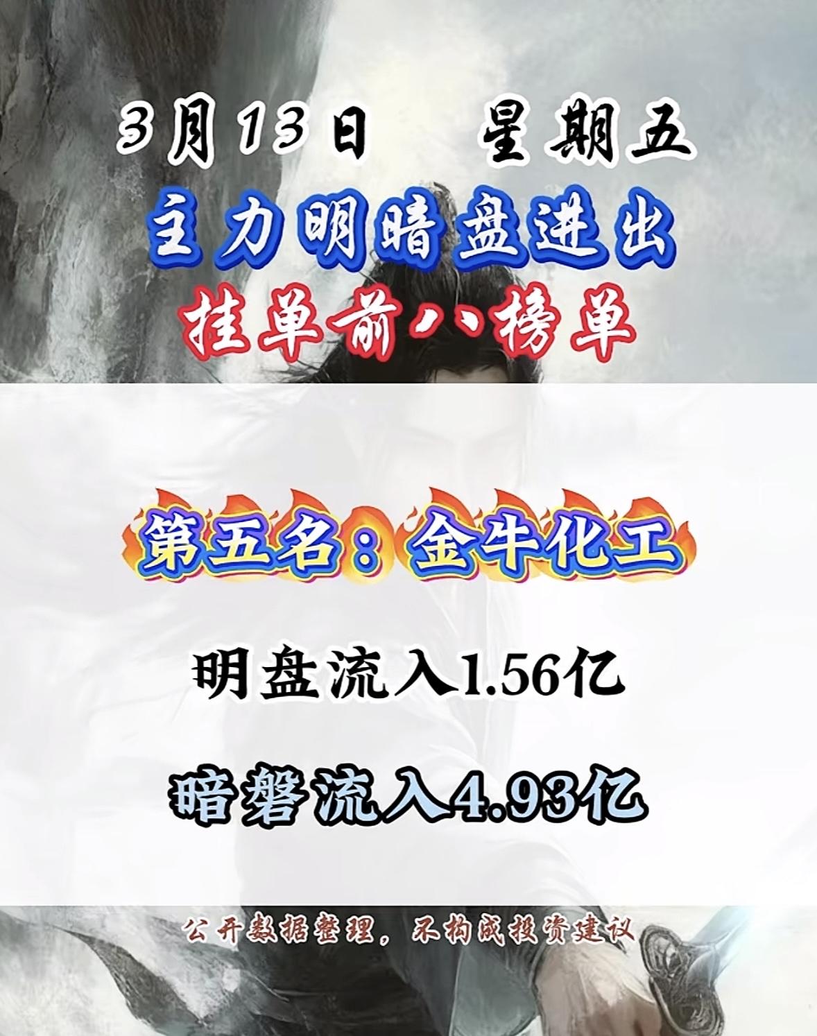 3月13日收盘主力资金明盘和暗盘净流入前8名个股揭晓 3月13日金风科技在主力明暗盘进出情况里排第八,这数据挺有意思。明盘流出1.47亿,暗盘却流入4.34亿。对比3月11日,那天明盘流入3.46亿,暗盘流入8.5亿,资金流向有了明显变化。 从最近主力增减仓趋势看,3日主力资金净流入 -1228万,5日主力资金净流入65915万,10日主力资金净流入13863万。资金流向就像天气一样多变,金风科技后续走势会怎样呢?是暗盘资金持续发力,还是明盘流出带来更多不确定性,值得关注。