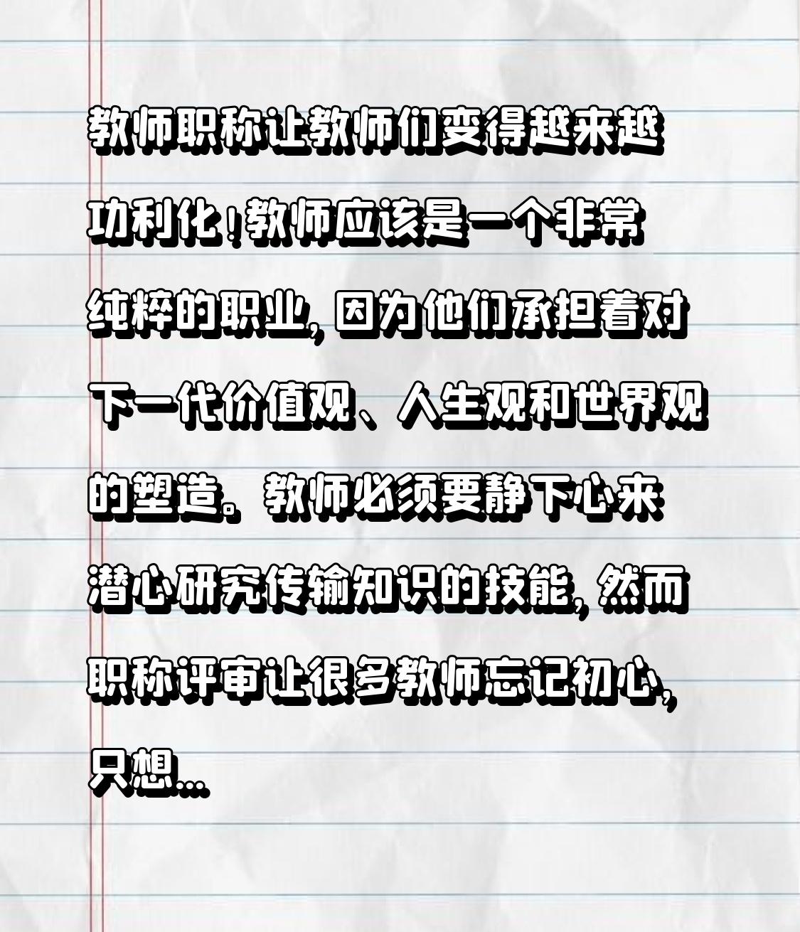 教师职称让教师们变得越来越功利化! 教师应该是一个非常纯粹的职业,因为他们承担着
