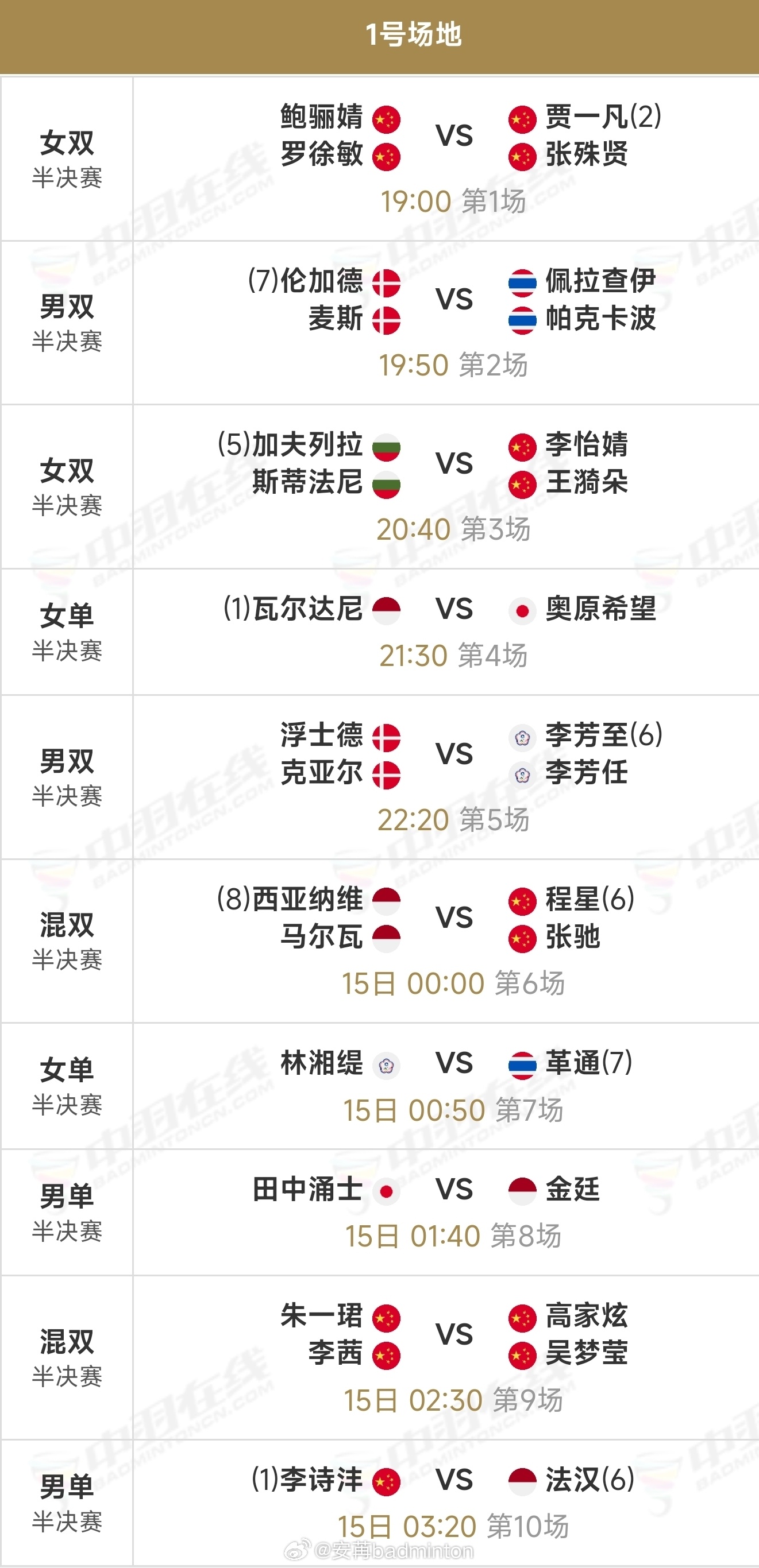🟣直播地址:中国羽毛球协会公众号&视频号/优酷等🟣实时比分:网页链接